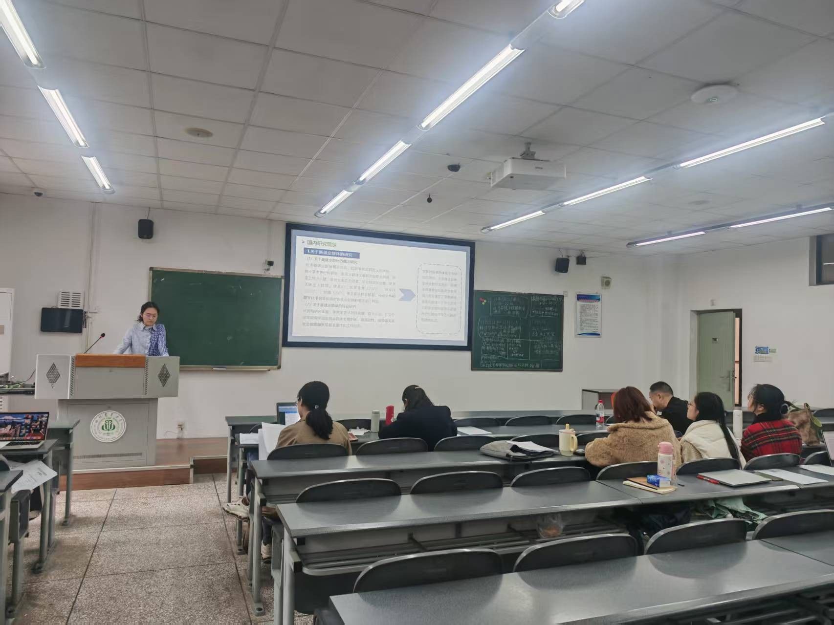 此次读书报告会共分两组,采取“个人报告+同学讨论+评审答辩”的模式。首先由2024级全体马克思主义中国化专业学生按照顺序上台,进行时长约10分钟的陈述汇报,精炼且清晰展示其待发表期刊论文或毕业论文的文献综述,汇报围绕国内外研究现状、研究不足、研究创新点等内容。然后进入学生讨论环节,时长亦为10分钟,在此环节同学们各抒己见、相互问答,激发大家对文献综述的多角度认识。最后由评审老师进行10分钟的问询答辩,评审老师针对汇报中的关键要点、潜在问题以及待完善之处进行深入提问,从学科属性问题、文献综述的切入点和严谨性等问题与同学们广泛研讨。