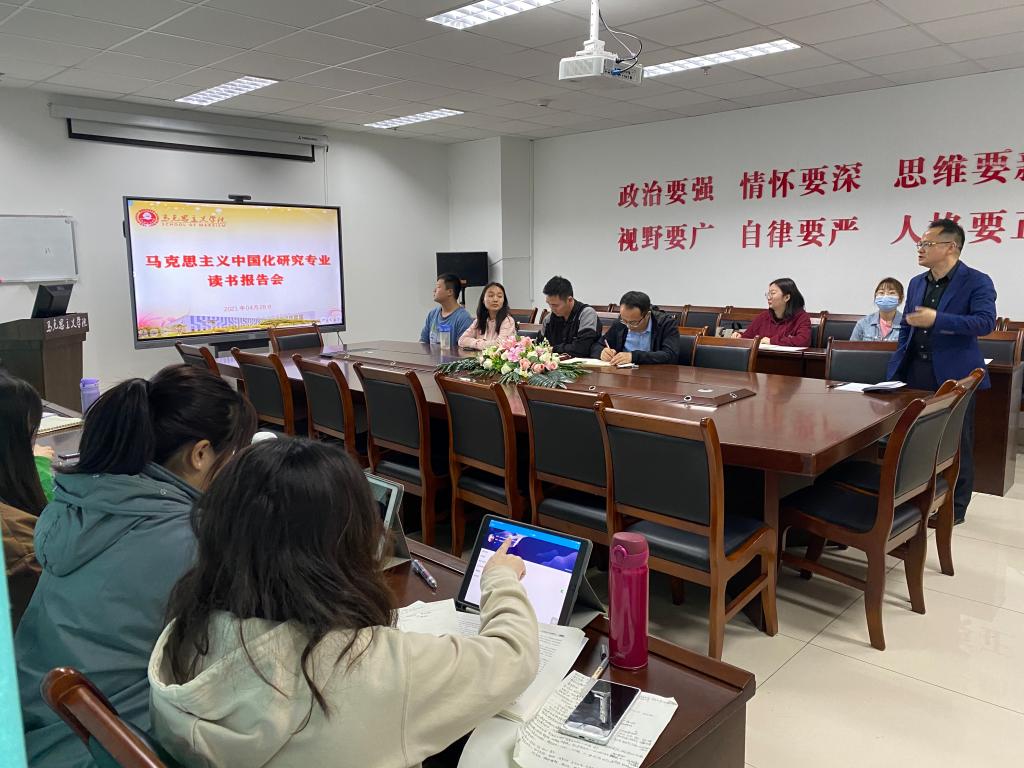 4月28日上午,学院马克思主义中国化研究专业读书报告会在西康楼1607会议室如期开展。学科负责人颜怀坤老师出席报告会,马克思主义中国化研究专业2019级、2020级全体研究生参加。