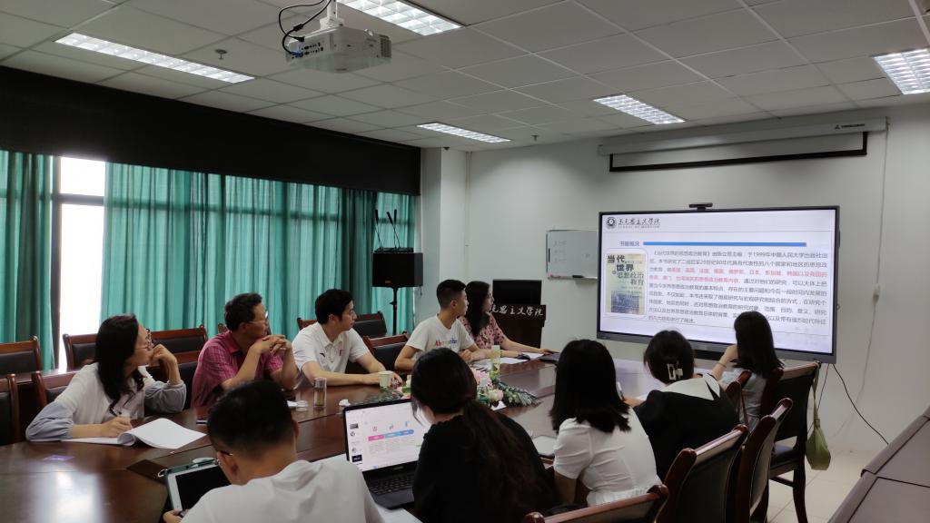 630日下午,思想政治教育专业读书报告会在学院会议室如期进行。本次读书报告邀请赵国友、杜彬、李晓辉前来指导。思想政治教育专业2019级、2020级研究生参加读书报告活动。本次阅读书目是中国青年政治学院思想政治教育研究所所长陈立思教授著的《当代世界的思想政治教育》。