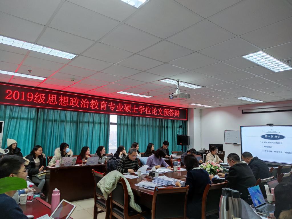 12月17日14点,思想政治教育专业2019级学位论文预答辩在7教1607会议室如期举行。本次预答辩诚邀西华大学思想政治教育系主任、硕士研究生导师、西华大学青年学者刘英博士担任答辩委员会主席。答辩委员会成员有:我院马克思主义发展史学科负责人赵国友老师,马克思主义基本原理学科负责人舒永久老师,马克思主义中国化学科负责人邝良峰老师,思想政治教育学科负责人李晓辉老师以及思想政治教育学科导师张禧、傅新禾。本次答辩设置了线上与线下相结合方式,学科其他导师可根据实际情况自行选择参加线上或线下预答辩,本学科2020级、2021级全体学生参加线下聆听。