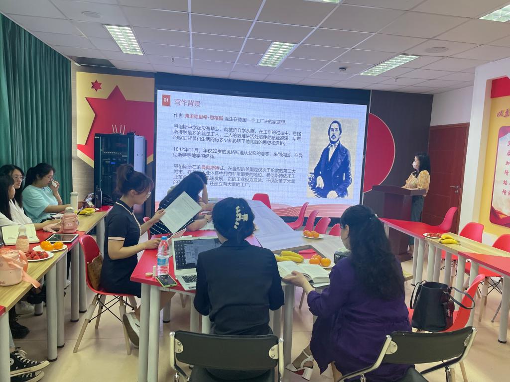 2020级研究生谢恩童主要从《英国工人阶级状况》(后简称《状况》)一书的写作背景、基本内容和当代意义做了交流分享。她分享到,本书首先考察了无产阶级的起源和发展;其次考察了资本主义社会中无产阶级的悲惨命运;第三,明确了无产阶级不只是一个遭受苦难的阶级,而是能够自己解放自己甚至解放全人类的伟大阶级,无产阶级的阶级斗争是历史发展的强大动力;第四,总结了英国工人运动的经验教训,高度评价了英国宪章运动,称它是无产阶级第一次独立的政治运动,但也批评了宪章主义者目标狭隘的弱点等。