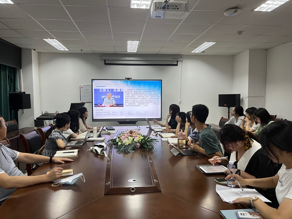 2022年7月1日19:30,马克思主义学院思想政治教育专业七月读书报告会于学院会议室顺利召开。本次阅读书目是电子科技大学马克思主义学院院长吴满意教授主编的《网络思想政治教育生态系统研究》,冷军老师莅临本次读书报告会进行交流与指导,思想政治教育专业2020级、2021级全体研究生参会。