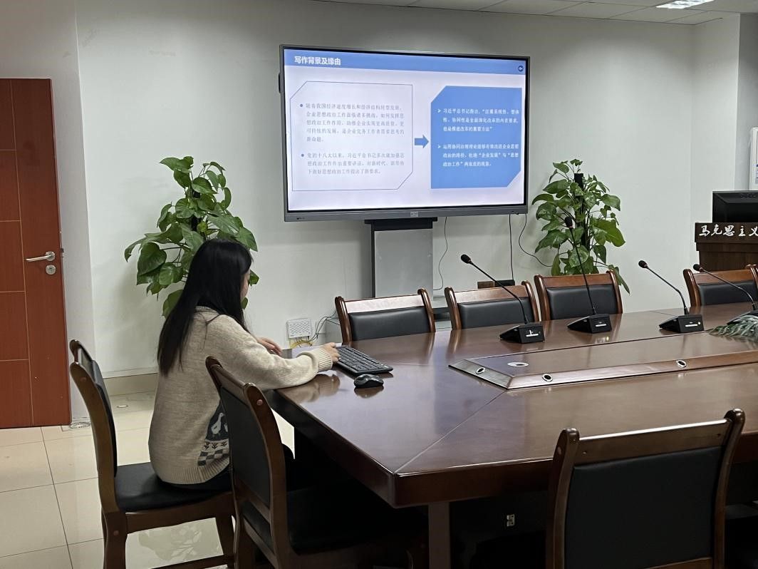 2021级何纹钡对提交讨论的《协同治理理论视角下企业思想政治工作创新路径—基于川中油气矿分析》一文从选题缘由、主要内容两个方面进行了阐述,她指出随着我国经济增长和经济结构转型发展,需要发挥思想政治工作作用,助推企业实现高质量发展,并从协同治理理论内涵与特征、协同治理理论在企业思政工作中的价值、协调治理理论视角下企业思政工作创新路径、案例分析四个部分来组织论文框架。同学们对这篇论文提出了不同的见解,进行了活跃地讨论。2022级白桓瑞根据论文内容建议将题目聚焦在“国有企业”这一主体上;2021级田璐从论文框架上提出建议,指出论文第一部分和第三部分可以结合在一起,作为对“国企协同治理”内涵的论述。其他同学对文章的行文逻辑、协同治理内涵等问题上提出了自己的想法。陈老师建议更生动、丰富地引用企业资料,以更好地说明问题、分析案例,李老师再次梳理了论文的逻辑框架,指出要从是什么、为什么、怎么做来组织论文框架。