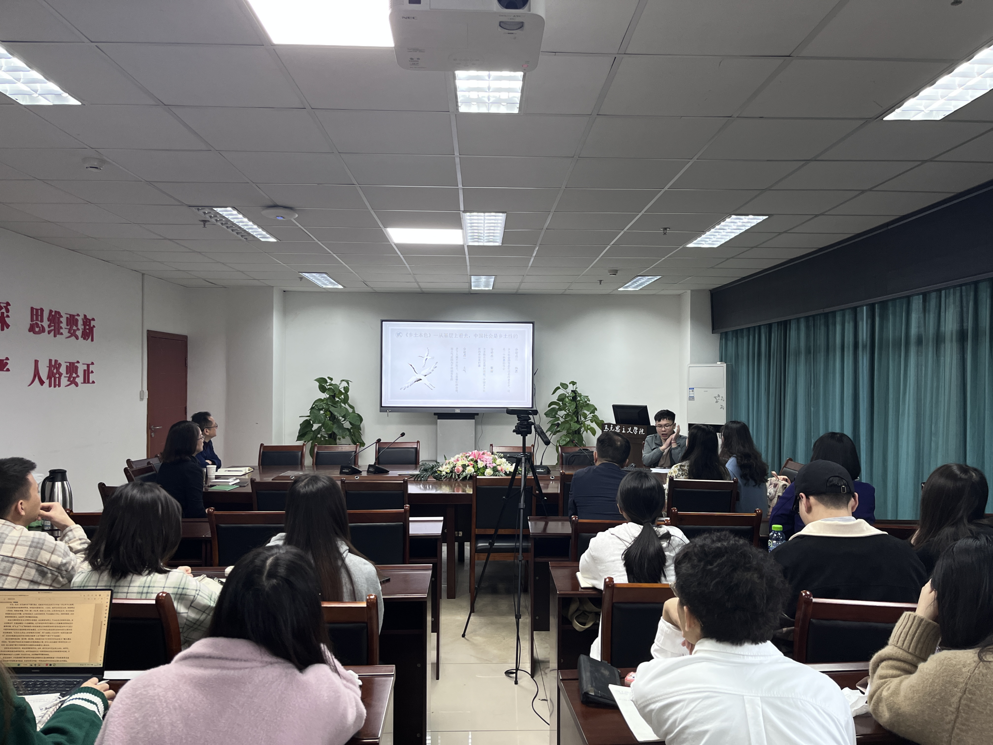 3月16日上午9:30,马克思主义中国化研究专业读书报告会在7教1607会议室如期举行。会议由邝良峰老师主持,赵晓霞、颜怀坤、贺筱华等老师莅临指导。本次阅读书目是当代社会学家费孝通所创作的《乡土中国》。