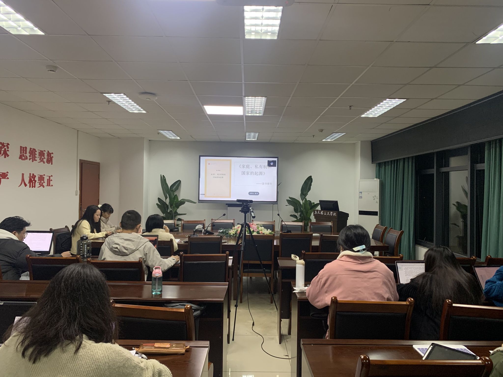2023年3月23日晚19:30在7教1607召开读书报告会。本次报告会以《家庭、私有制和国家的起源》一文进行分享交流,伍洋老师莅临指导,马克思主义基本原理2021级、2022级全体研究生参会,报告会分线上、线下同步进行。