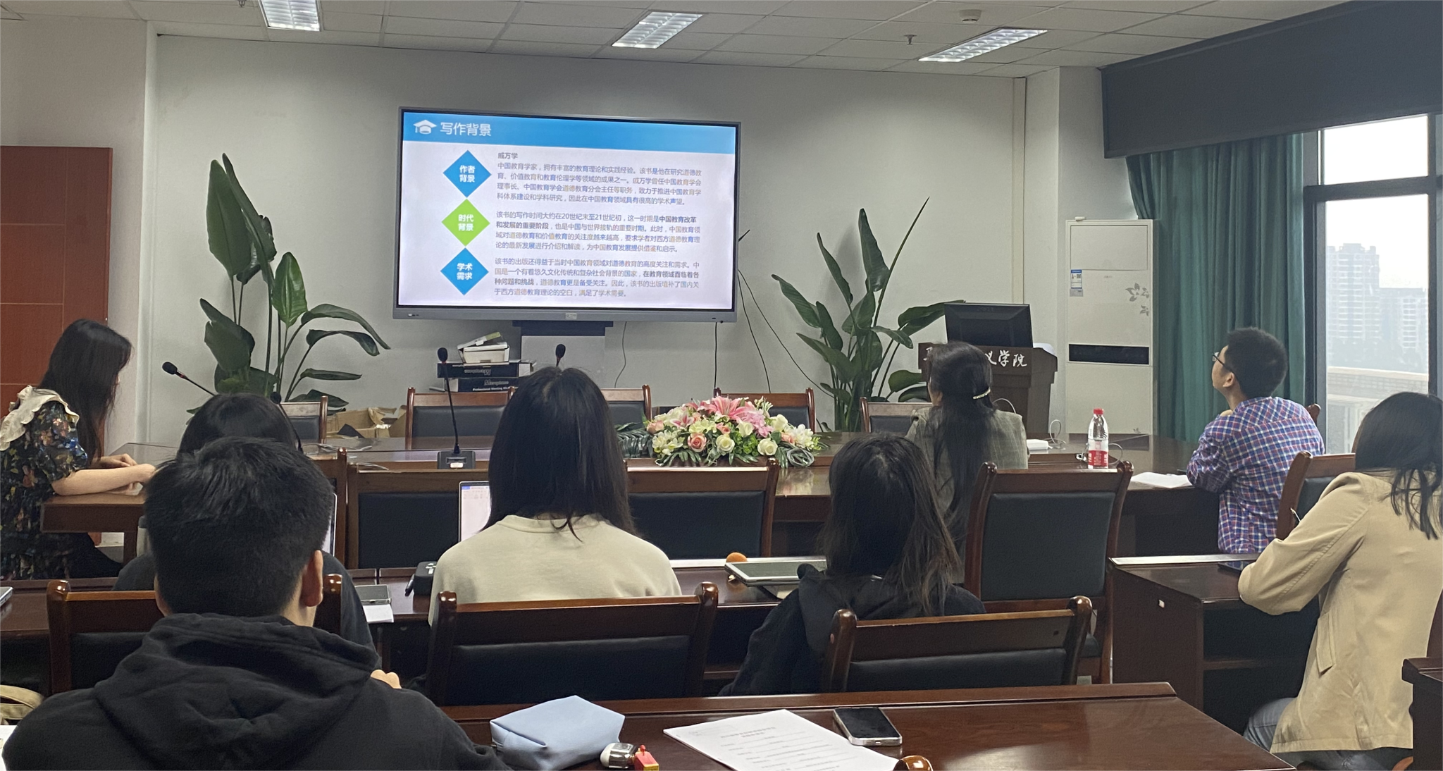 2023年4月28日下午2:30,思想政治教育专业读书报告会在七教1607会议室顺利举行。袁志香老师、陈琼老师莅临指导,思想政治教育专业2021级、2022级全体研究生参加。本次报告会是以戚万学所著的《冲突与整合:20世纪西方道德教育理论》一书进行交流分享。