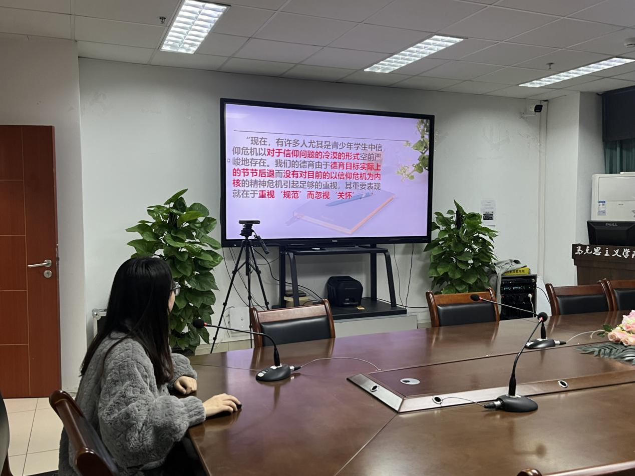 2024年3月20日,思想政治教育专业读书报告会在七教1607会议室顺利举行。本次报告主要围绕檀传宝所著的《信仰教育与道德教育》一书展开分享交流。陈琼老师莅临指导,袁志香老师线上参会,思想政治教育专业2022级、2023级全体研究生参会。