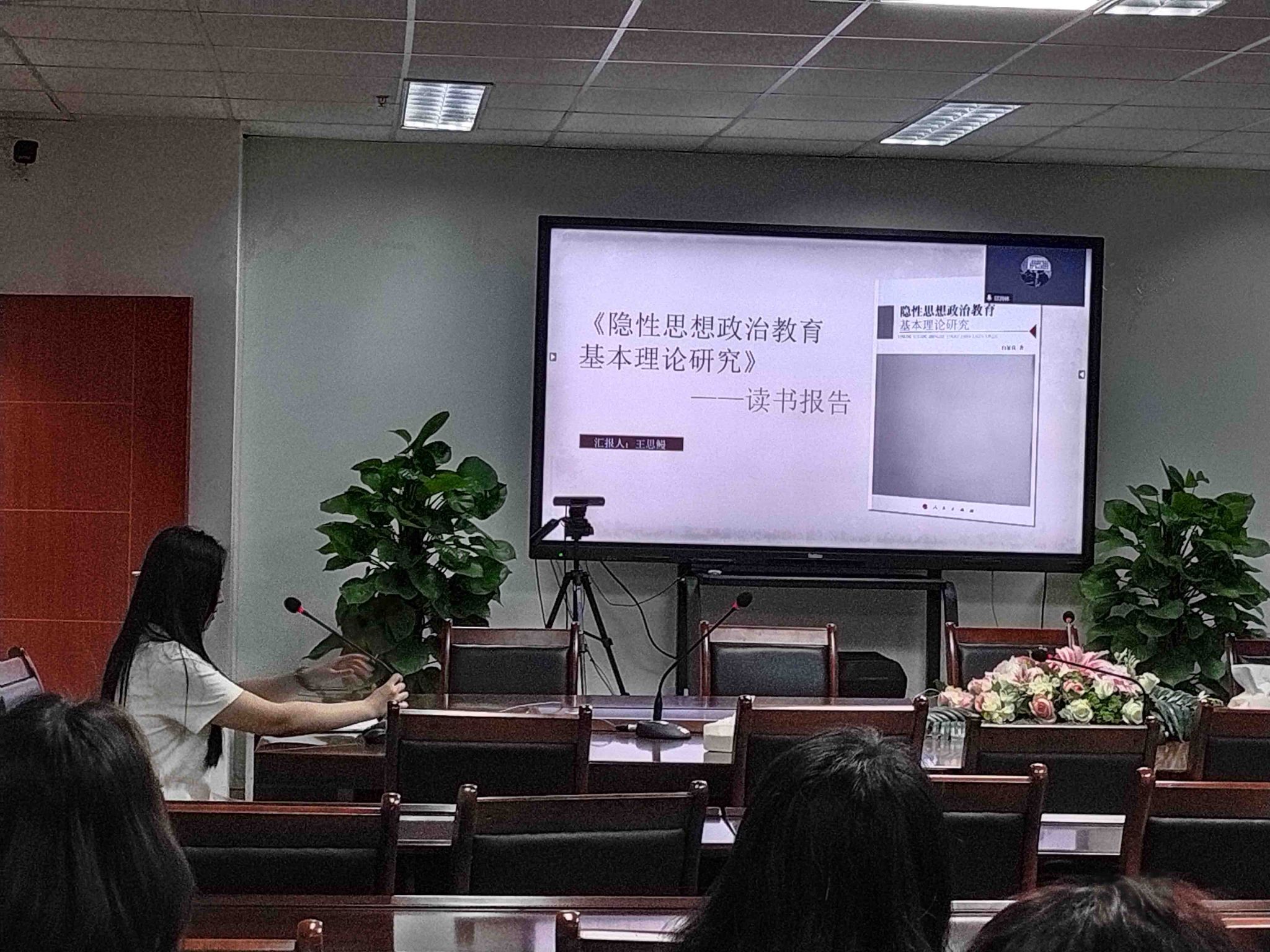 在最后,毛平老师给予了今天所做读书报告的两位同学高度的点评,毛平老师认为《隐性思想政治教育基本理论研究》在当下有高度的研究价值,鼓励思想政治教育方向的同学要树立起问题意识,从原著中寻找今后研究的方向点。李晓辉老师给参加此次读书报告的所有同学敲了警钟,李晓辉老师谈到,每位同学做读书报告的次数有限,所有同学都应当珍惜,并在阅读的过程中增长自身的知识储备以便为之后毕业论文的写作打下基础。