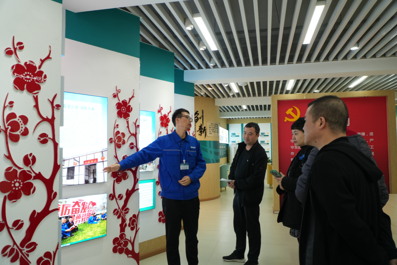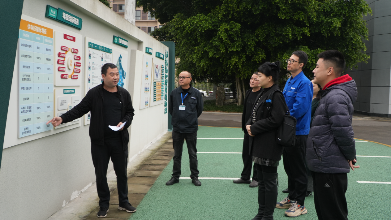 上午,宣讲团一行首先来到了国网自贡供电公司大山铺供电所。大山铺供电所成立于2000年10月1日,坚持弘扬革命烈士精神,汲取红色力量,认真践行“人民电业为人民”的企业宗旨,聚焦现代“双一流”发展目标,让革命红与国网绿相映成辉,现已成为国网“五星级乡镇供电所”。在这里,宣讲团通过观看企业文化宣传片、参观党建展厅、与一线员工交流等方式,深入了解了供电所在党建引领、安全生产、优质服务等方面的先进经验和典型做法。