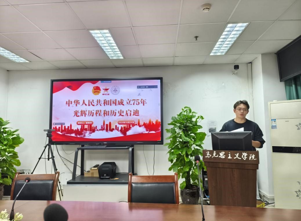 活动伊始,学校青马班、学院右木理论宣讲团成员夏唯洋围绕“习近平在庆祝中华人民共和国成立75周年招待会上的讲话”,结合党的二十届三中全会精神,对中华人民共和国成立75周年尤其是改革开放以来党和国家事业取得的历史性成就、推进中国式现代化必须把握的四大原则以及新时代的青年群体应当如何有所作为等方面进行了深入讲解。随后,读书会成员黄莺围绕“健全因地制宜发展新质生产力体制机制”,结合具体事例,从核心概念、意义任务、原则方法等方面进行了详细讲解。读书会团支书孙媛围绕“完善城乡融合发展体制机制”,从历史演进、重大意义、基本遵循和各项任务等方面进行了交流分享。读书会成员陈俊伊围绕“深化党的建设制度改革”,从重大意义、方向原则和重点任务等方面进行了汇报分享。