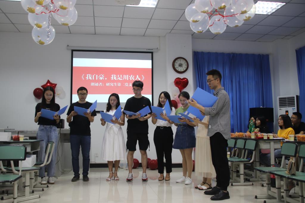 第一个节目是2018级三位师妹带来的歌曲《你曾是少年》,表达出师弟师妹们对师兄师姐们美好的祝愿—历经千帆,归来仍是少年;接着是击鼓传花的小游戏,将活动推向了有一个热闹的小高峰;接着是由马克思主义学院学生第二党支部带来的朗诵《我自豪,我是川农人》,慷慨激昂的朗诵让大家感同身受;最后是由2018级罗昱夫带来的吉他弹唱《曾经的你》,希望大家都能不忘初心,砥砺前行。不管是歌曲、还是互动游戏都传达出对2016级毕业研究生的祝福,传达出一种温馨、热烈的气氛。