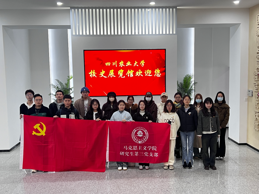 2024年3月12日下午,马克思主义学院研究生第三党支部开展党日活动,全体党员参观成都校区校史馆。在讲解员娓娓道来的讲解中,支部18名党员同志跟随讲解员的步伐,一同学习川农大的建校历史,学校发展史。川农大1906年建校,建校初期,全体师生筚路蓝缕,在艰苦的条件下,坚持科学研究,这种精神现在也被广为流传,简称为川农大精神:爱国敬业,艰苦奋斗,团结拼搏,求实创新。川农大百余年的办学历程中,一代代川农人继承学校的优良传统,怀报国之志,默默耕耘在农业发展第一线。