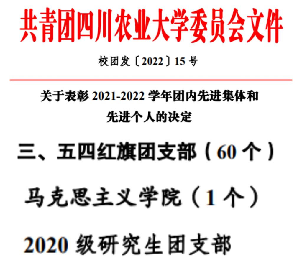 学院2020级研究生团支部获评学校2021-2022学年度“五四红旗团支部”