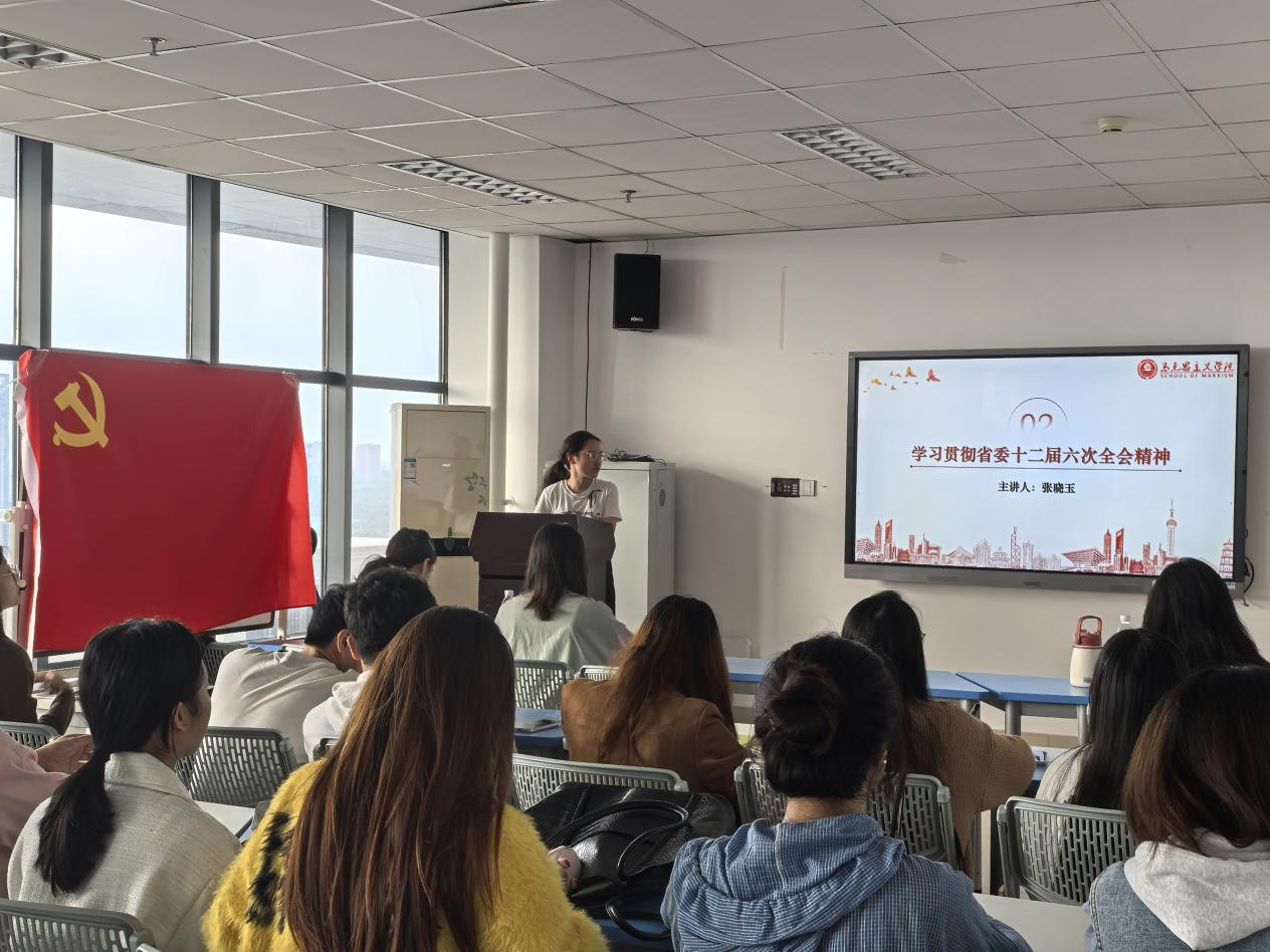 为深入学习贯彻省委十二届六次全会精神,10月22日下午,马克思主义学院研究生第二党支部于7教1605会议室召开了“学习贯彻省委十二届六次全会精神”专题组织生活。会议由刘静同志主持,支部全体党员参加。