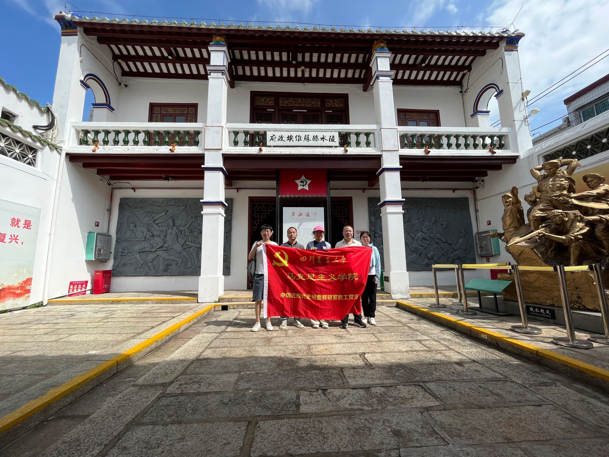教研室党支部此次南行还走访了陵水县农民协会旧址和陵水县苏维埃政府旧址。1926年6月,在中国共产党的领导下,陵水县农民协会成立。1927年12月,在县农民协会的基础上成立陵水县苏维埃政府。党支部成员详细了解了陵水县这段红色历史,以小分队的形式在此展开了“重温党史”的支部活动。这次支部活动紧贴课程内容,是进一步了解南繁基地实际环境的强有力补充,更成为“学史铸魂强农”中“红绿交织”特色版块的资源素材的重要储备。
