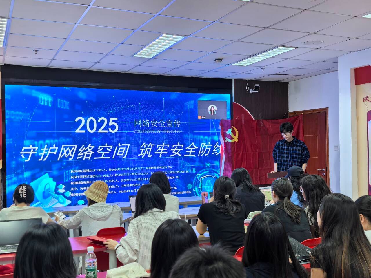 最后,右木理论宣讲团成员肖钧友以“守护网络空间 筑牢安全防线”为主题进行宣讲。他系统阐释了网络安全的定义、国家相关支持政策以及公民和组织在网络安全方面的权利与义务,并重点分析了当前网络安全领域面临的传统风险与人工智能技术带来的新型挑战,如AI换脸诈骗、AI编造谣言、侵犯肖像权等突出问题。此外,他还结合实际案例分享了防范电信网络诈骗、加强个人信息保护的具体方法,呼吁全体党员增强网络安全意识,提升防护能力,争做网络文明的践行者和安全防线的守护者。