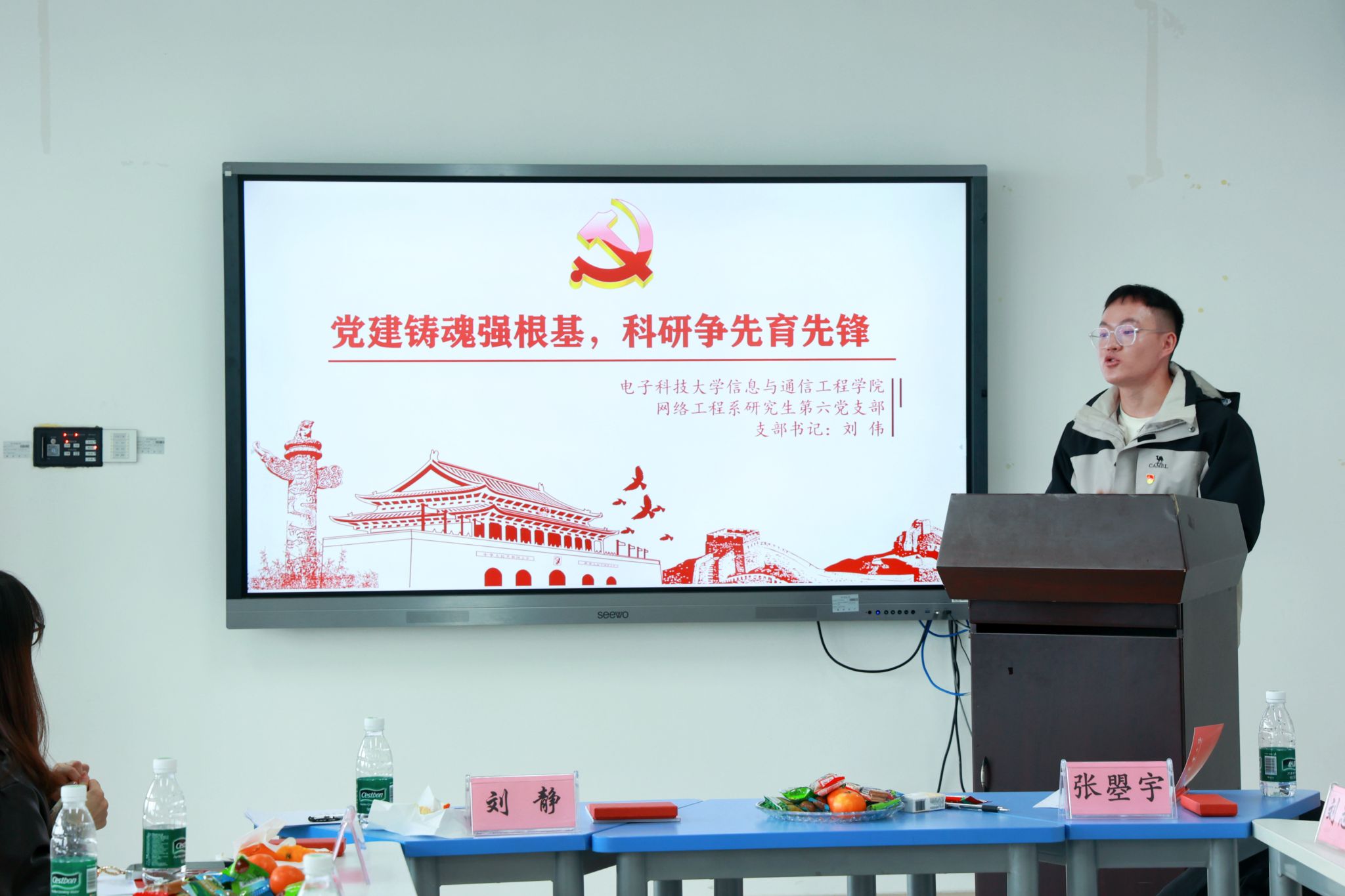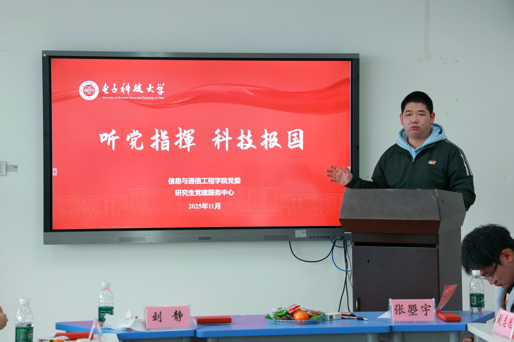 活动聚焦“党建经验互鉴”主题,双方围绕支部建设进行了深入的专题分享。电子科大李茂以“听党指挥 科技报国”为题,系统介绍了学院党团组织架构,重点分享了“科技赋能服务、党建引领成长”特色模式下的党建创新实践;我院周朝晖结合马克思主义学院学科特点与支部实际,介绍了台账化管理、科研诚信教育等特色做法,通过规范党员成长记录、常态化开展科研诚信主题党日等活动,推动党团建设与学科服务深度融合;电子科大刘伟则详细介绍了其支部作为“样板支部培育单位”的建设路径,以志愿服务为抓手,推动党建工作与社区服务、专业实践紧密结合,充分展现了“党建+服务”的生动实践。