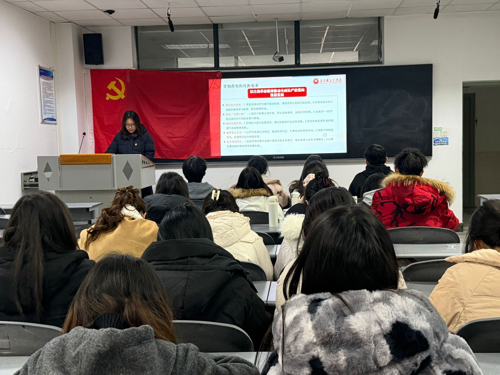 12 月 15 日,ok138cn太阳集团529马克思主义学院研究生第一党支部以 “悟讲话精神 强组织建设” 为主题,开展专题组织生活,由支部戚淑惠同志主持。活动在庄严的国歌声中开始,党员全程参与、积极交流。