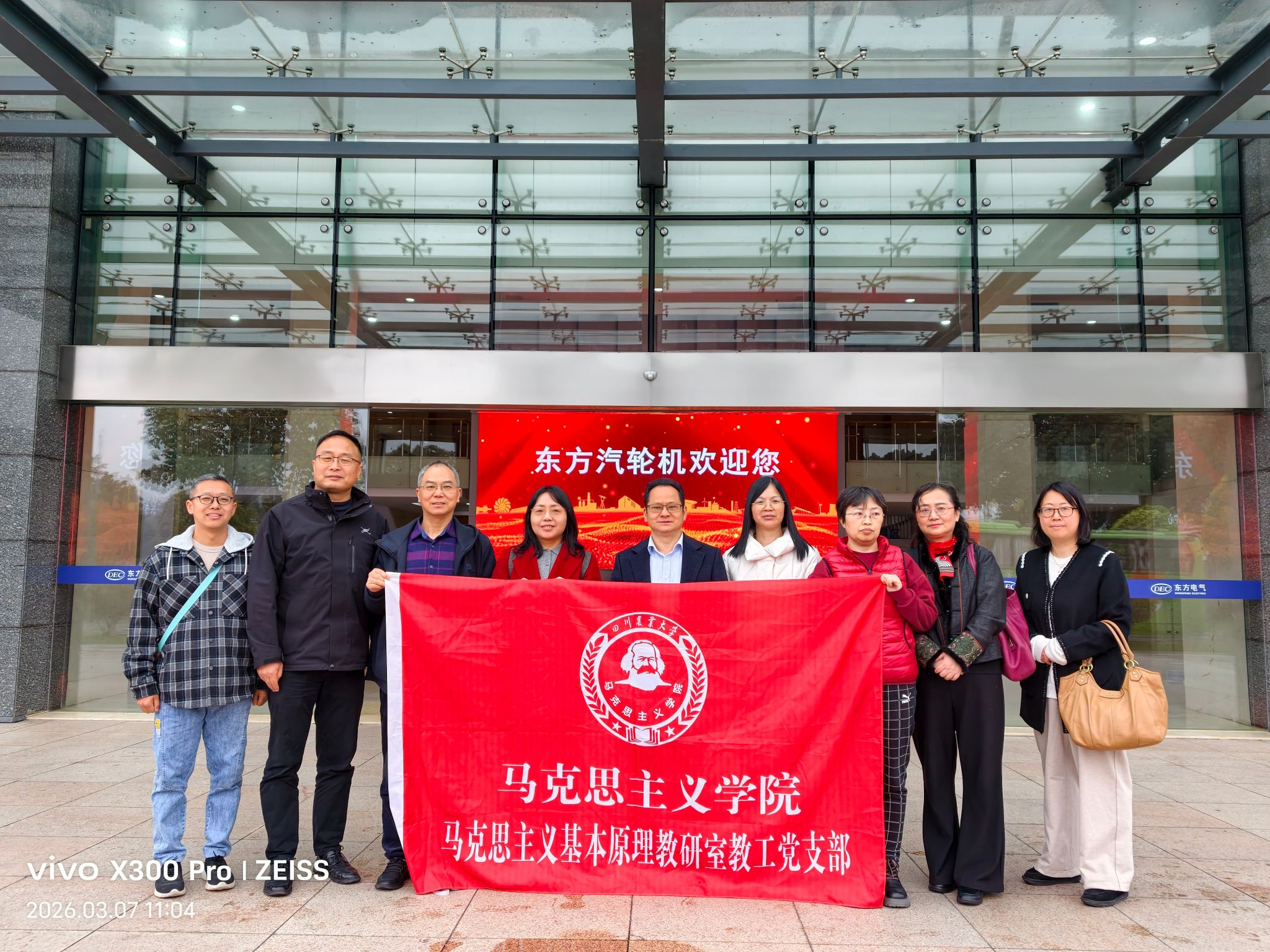 3月7日,马克思主义基本原理教研室教工党支部赴德阳东方汽轮机厂开展主题党日与实践研学活动,推动“学、讲、研、用”一体化工作法落地见效。