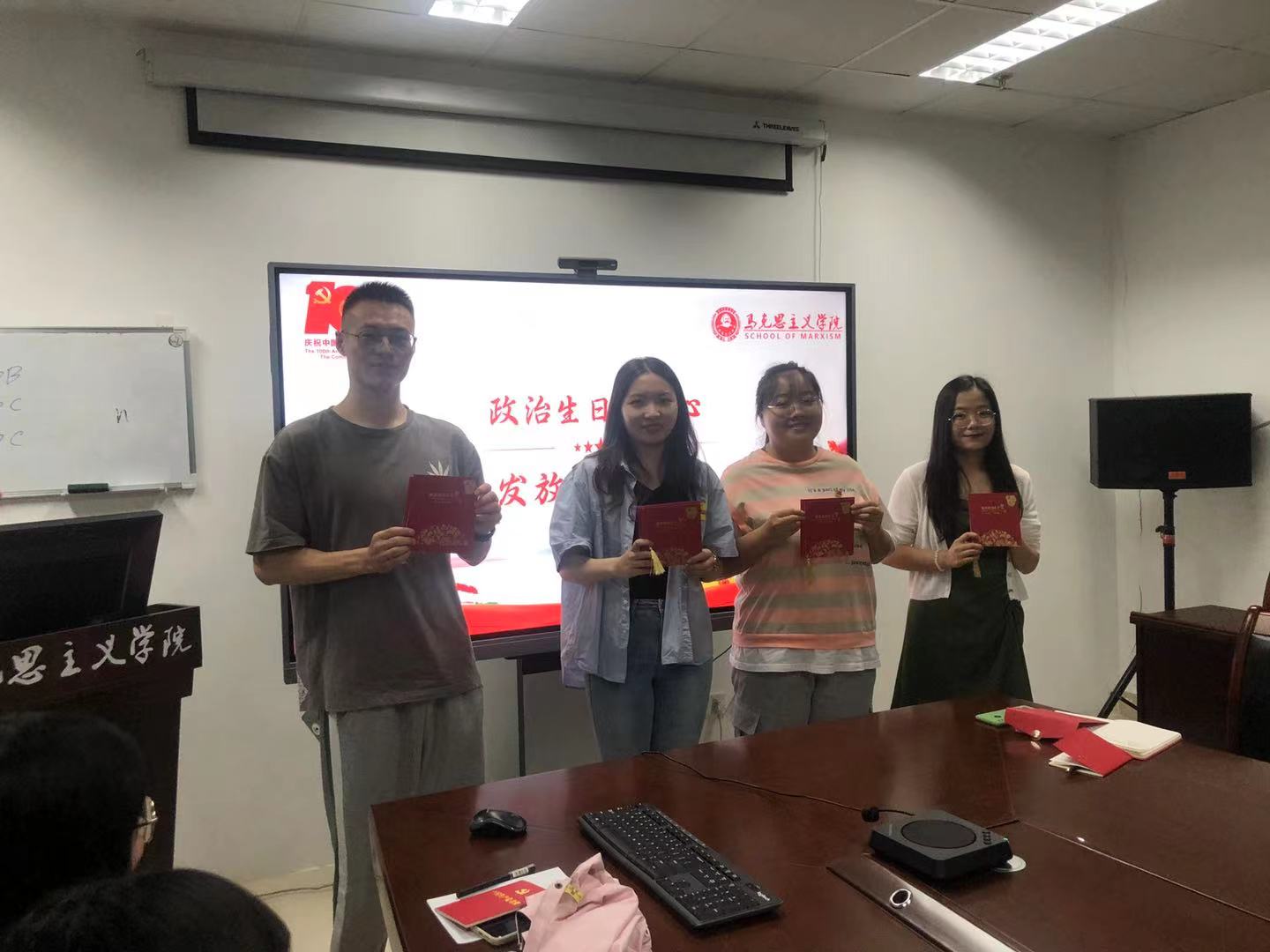 为深入学习贯彻习近平总书记在党史学习教育动员大会上的重要指示精神,进一步落实党史学习教育,强化党员身份意识、宗旨意志、责任意识,2019级研究生党支部于6月18日在西康楼1607会议室召开“政治生日强党性 重温党史忆初心”主题党日活动。活动由2019级党支部书记吴雨桐主持,2019级全体党员、入党积极分子参加。