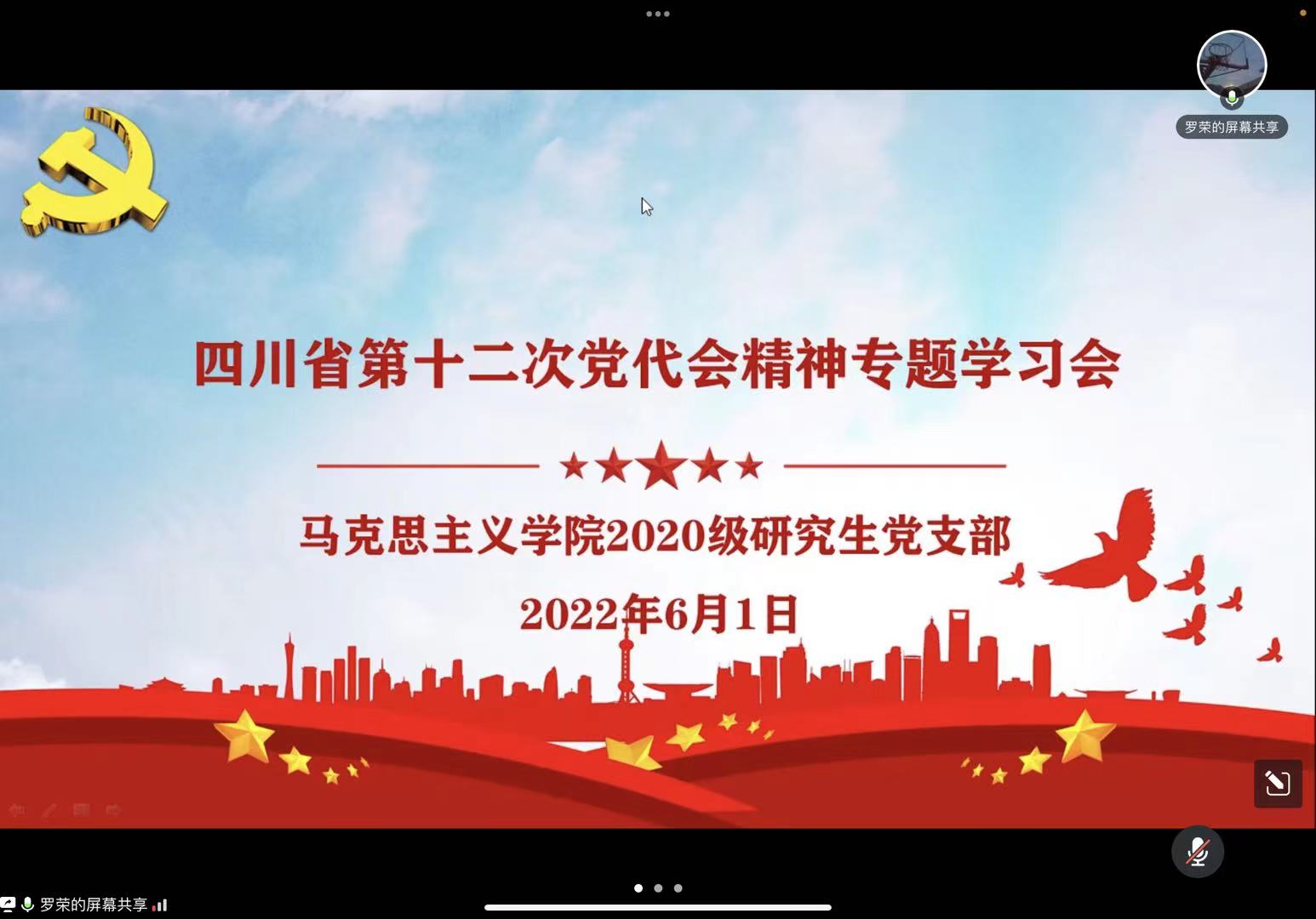 为学习贯彻落实四川省第十二次党代会精神,6月1日晚,2020级研究生党支部召开了线上组织生活会进行专题学习。2020级全体研究生党员参会,会议由党支部书记罗荣主持。