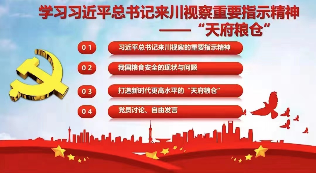 首先,赵雪郦播放了《习近平总书记来川视察重要指示精神》的相关视频,并带领全体成员回顾了习近平总书记关于粮食安全的重要论述,深刻认识只有立足粮食基本自给才能掌握粮食安全主动权,才能装满“米袋子”、充实“菜篮子”,充分满足人民群众对美好生活的最基本需要。