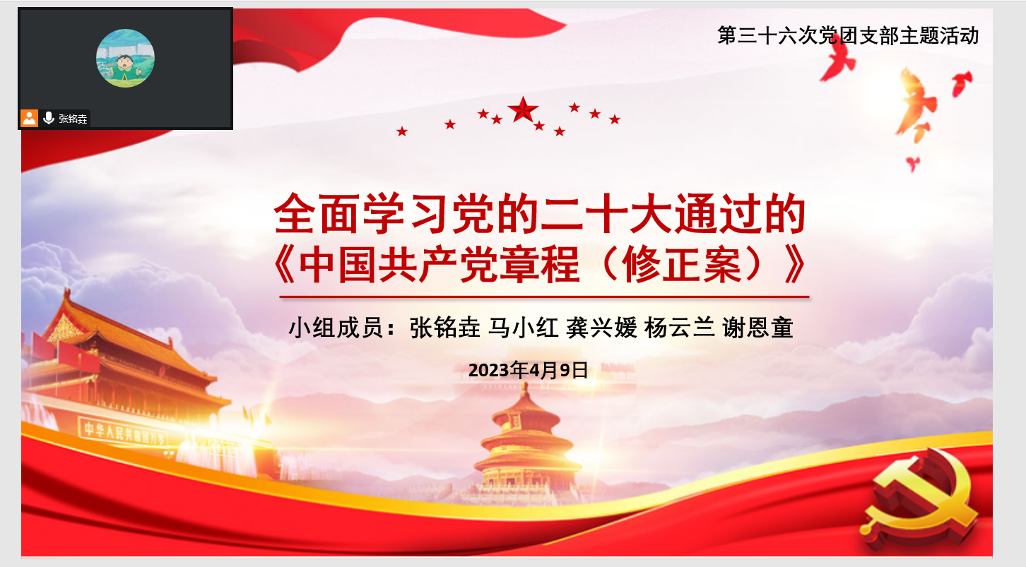 学院2020级研究生党支部深入贯彻党的二十大精神,切实落实校党委《党支部建设三年行动计划》,结合支部工作实际,在扎实学好理论知识的同时,瞄准支部同志的多元需求,探索出了“理论学习+”的组织生活新模式。4月9日晚,支部开展了第36次党组织生活会,组织生活会以《中国共产党章程》学习为主线,以规矩意识教育和职业发展教育为特色学习内容,促进理论学习入脑入心,满足毕业生党员成长成才新需求。