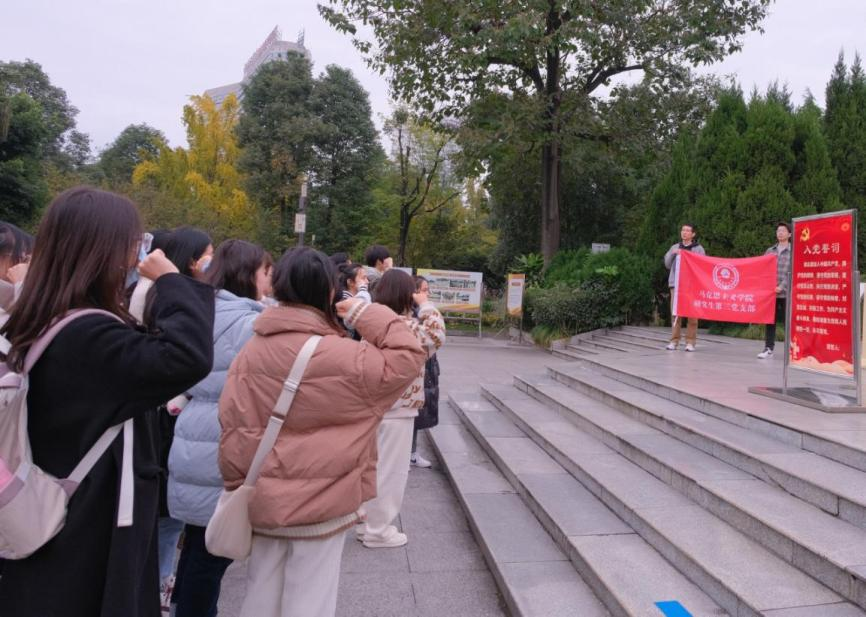 最后,在研究生第三党支部书记陈遥逸同学的领誓下,全体党员重温入党誓词,认真回顾入党时的初心与承诺。