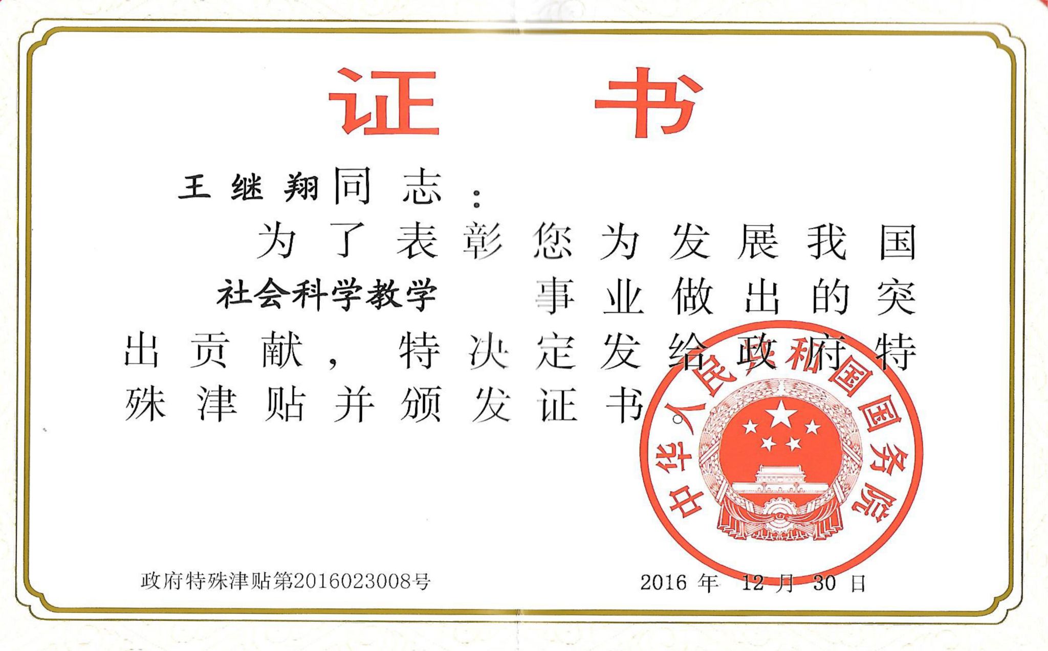 政府特殊津贴(王继翔)