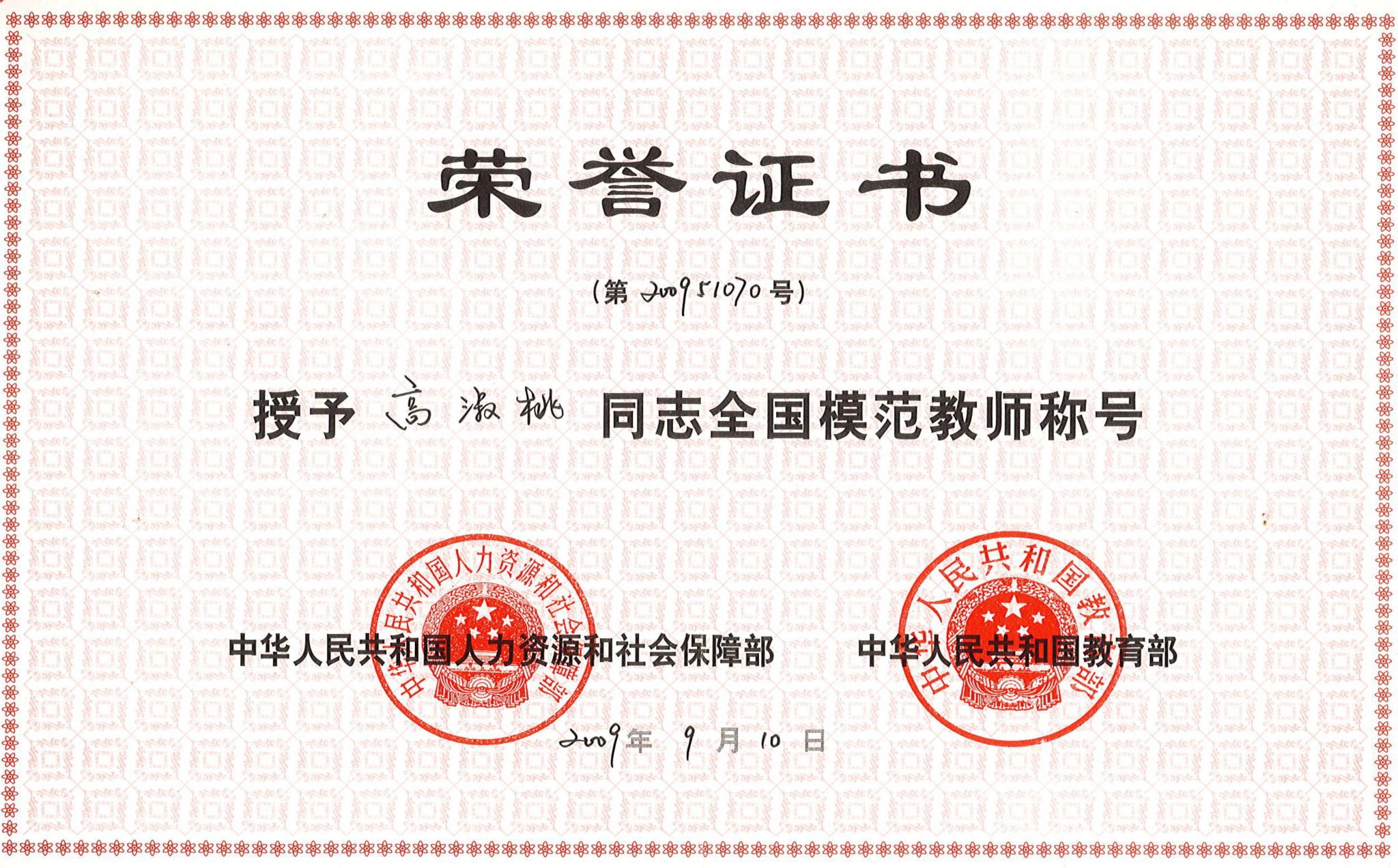 全国模范教师(高淑桃)