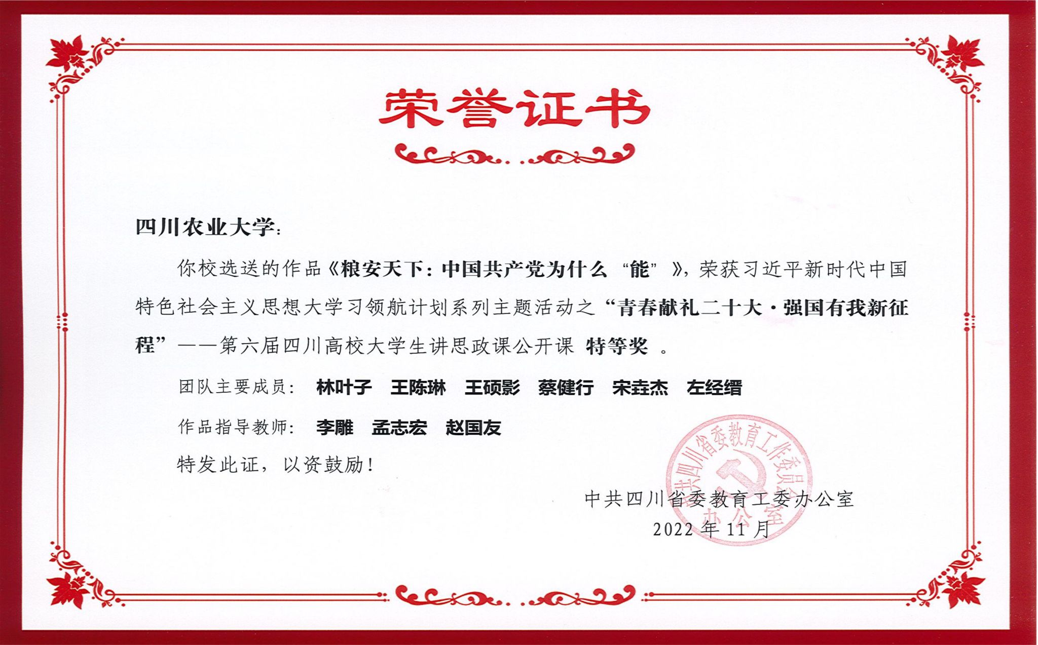 上一条:四川省第六届大学习领航计划系列活动优秀组织奖