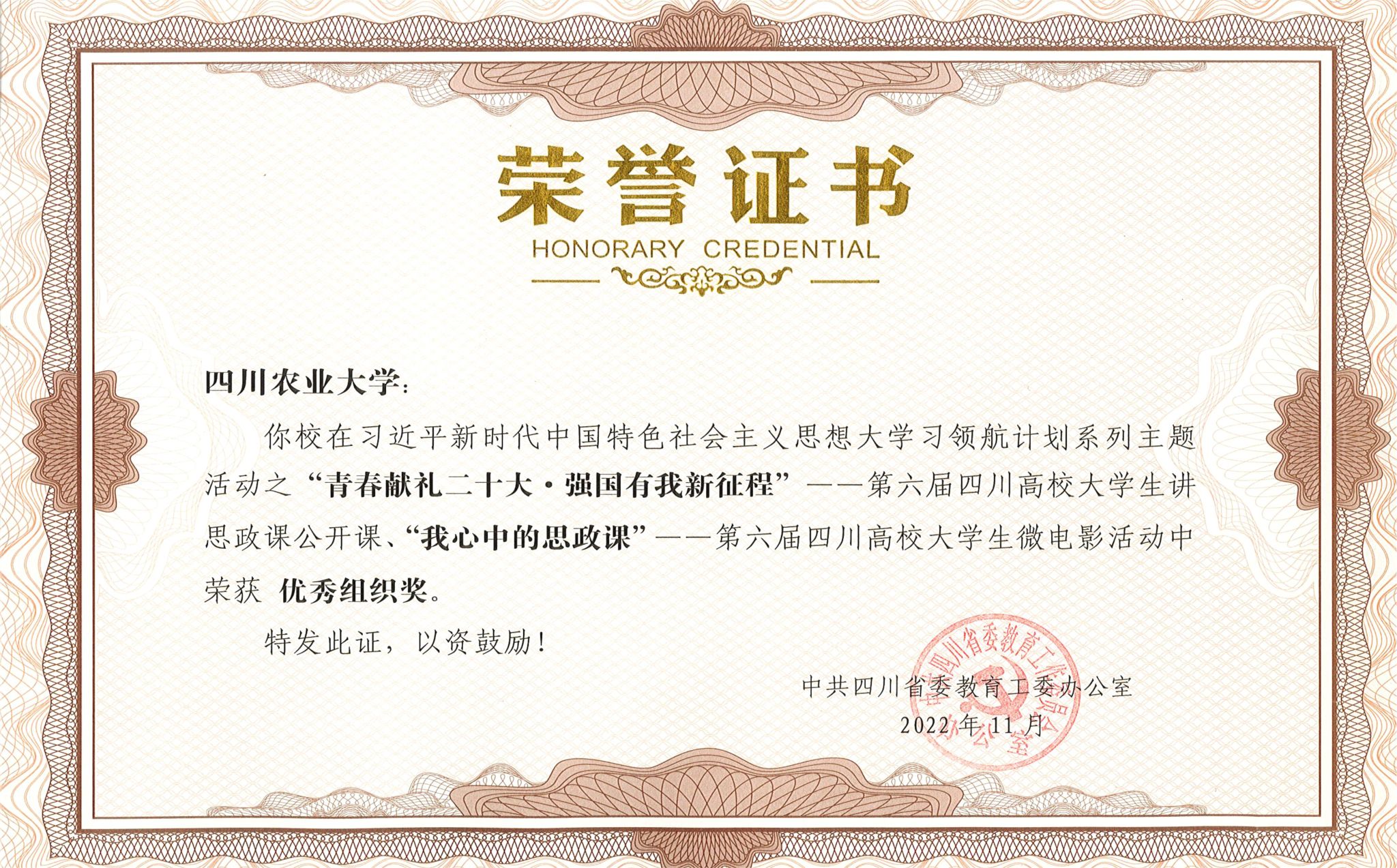 四川省第六届大学习领航计划系列活动优秀组织奖