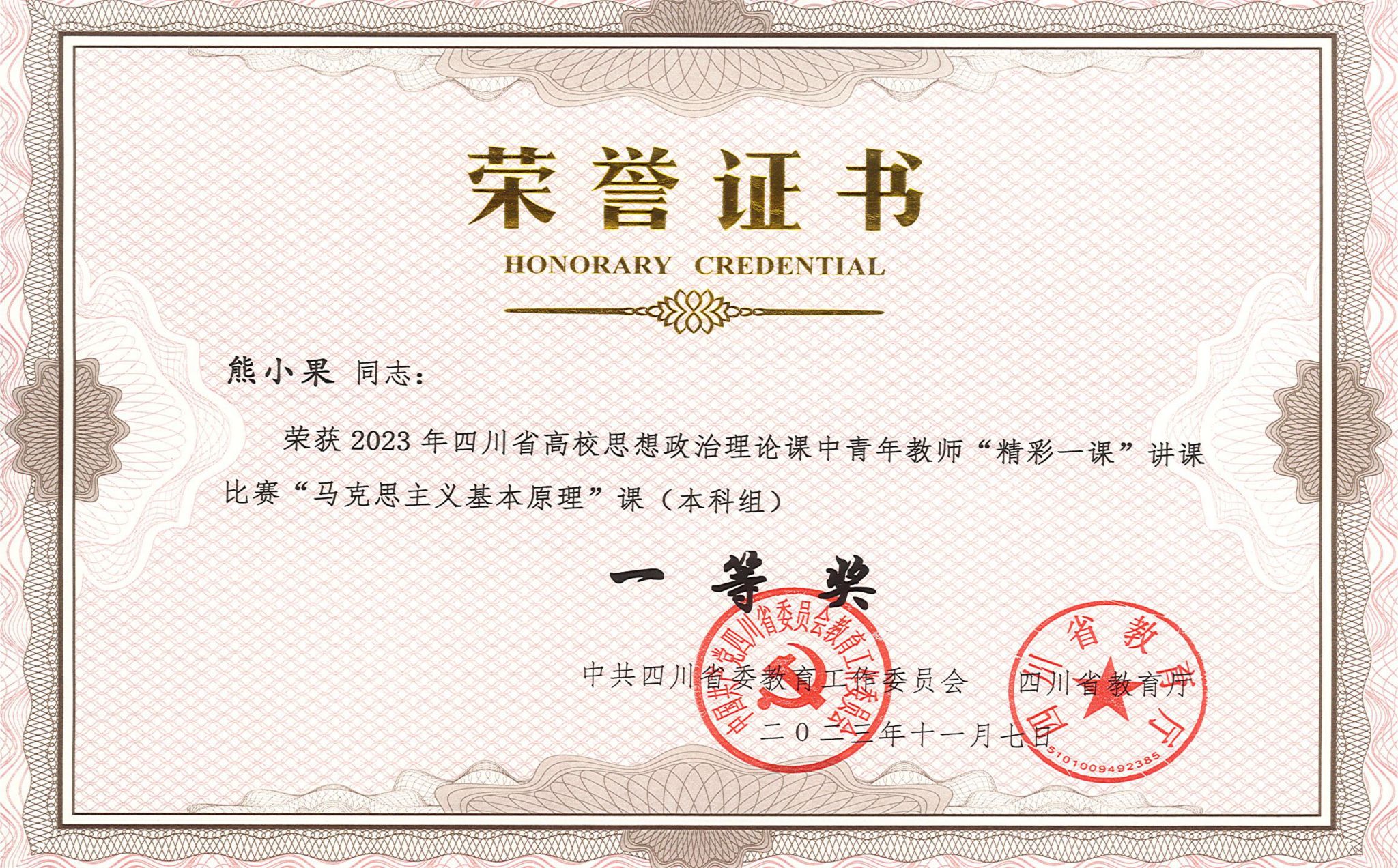 2023年四川省高校思想政治理论课中青年教师“精彩一课”讲课比赛一等奖(熊小果)