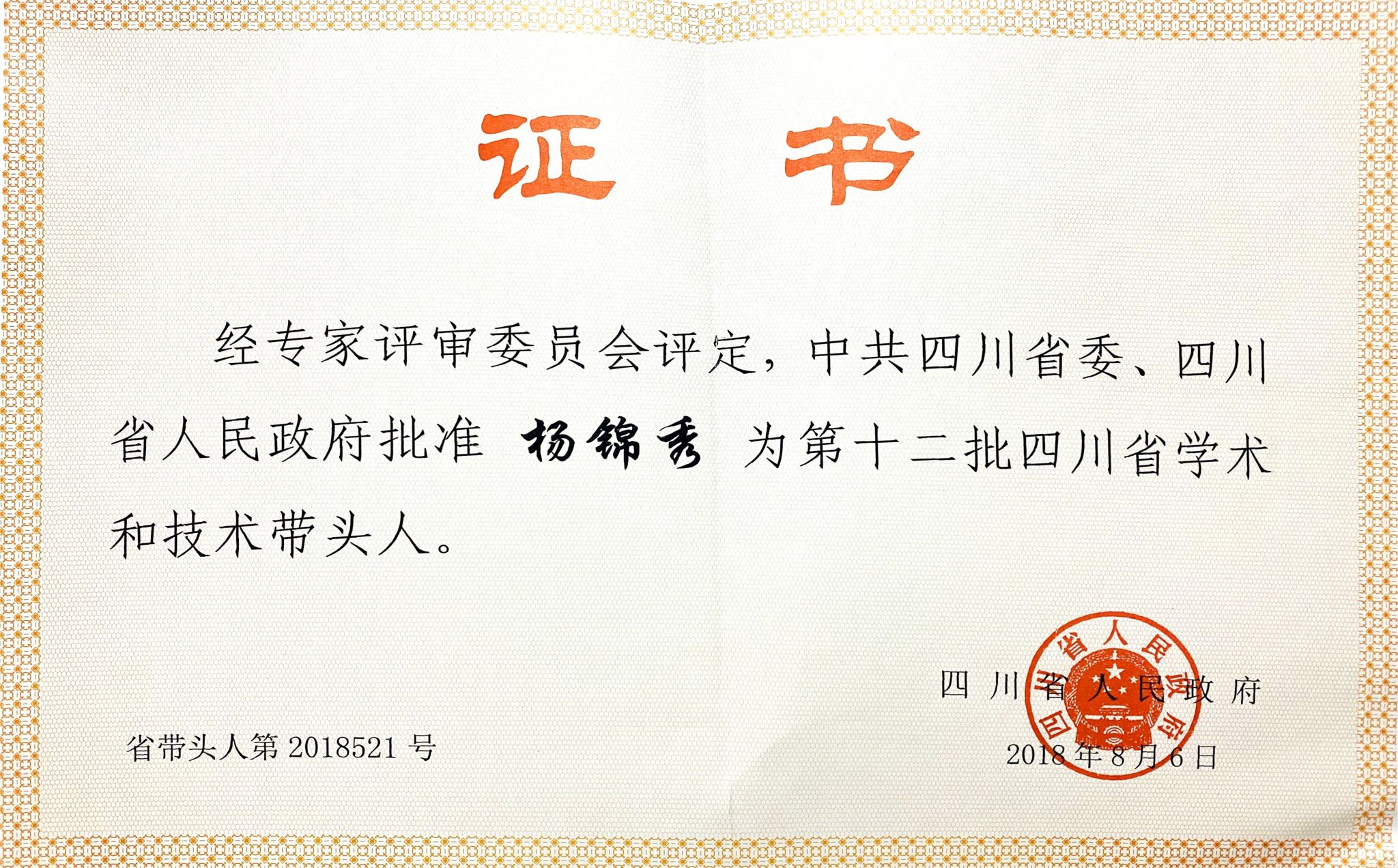 第十二批四川省学术和技术带头人(杨锦秀)
