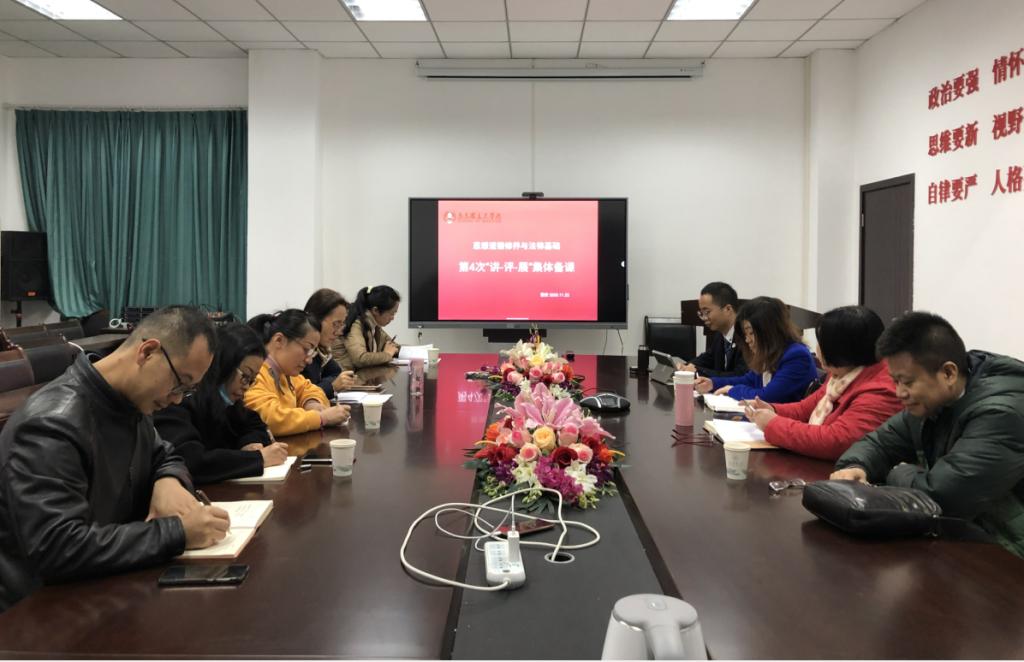 11月22日上午,《思想道德修养与法律基础》课“讲-评-展”第四次集体备课在雅安校区举行。副书记张宏霞,教研室教师及部门兼职课教师参加。