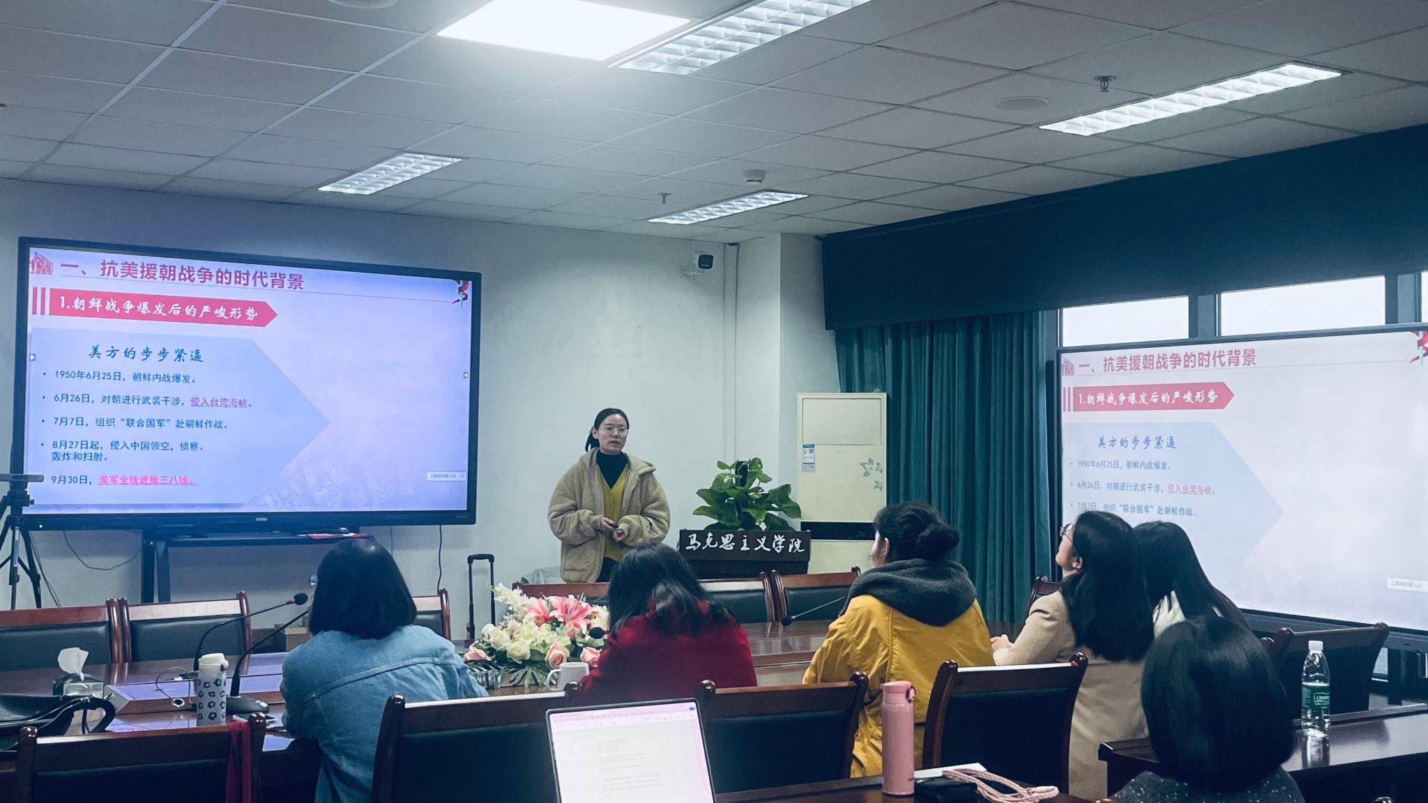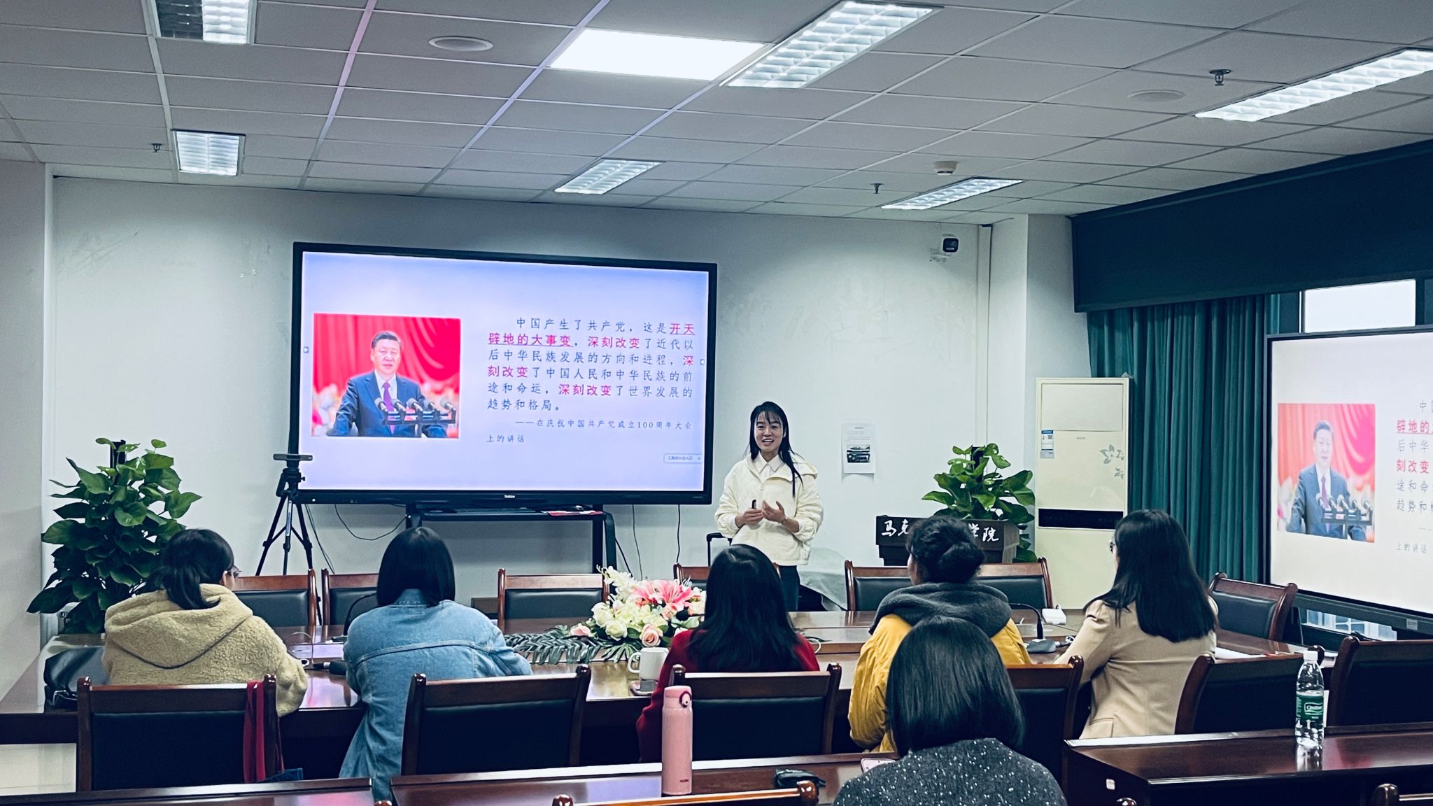 比赛现场,六位教师围绕近现代史核心主题展开精彩展示。杨珩老师以《为什么辛亥革命的爆发是历史的必然》为题,从历史、思想、组织、实践四大基础构建分析框架,清晰阐释历史必然性;尚爽老师聚焦《中国共产党第一次全国代表大会的召开与中国共产党的成立》,结合文献资料详细解读中共一大的主要内容,并深刻剖析中国共产党成立的历史意义。聂娟、赵海伦、文艺和杨天宇四位老师分别围绕中国近现代史的不同的关键问题展开教学,呈现出鲜明的个人教学风格。