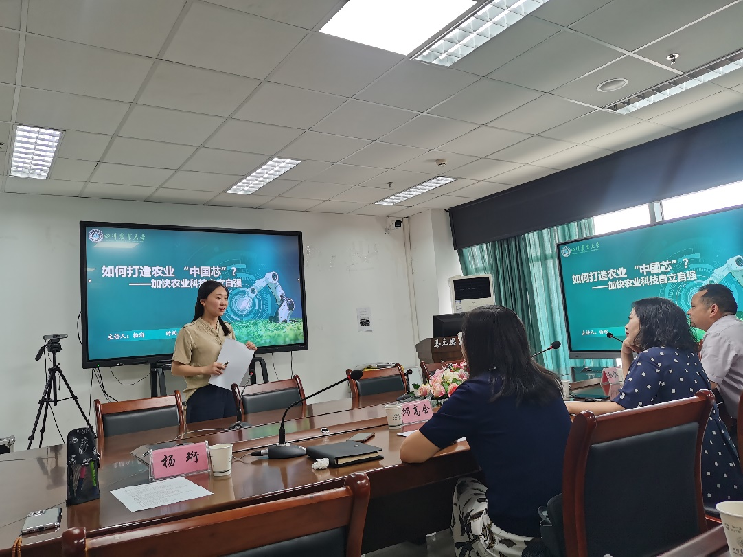 邱高会在开场发言中对各兄弟院校形势与政策课教师代表的到来表示热烈欢迎。随后,杨珩老师进行了题为“农业科技自立自强”的专题教学展示,其内容深入浅出,将理论与实践相结合,她从价值意义、科学内涵与实践要求三个层面详细解读了农业科技自立自强的内容,并讲解了如何激发大学生投身兴农强国实践的教学设计理路。