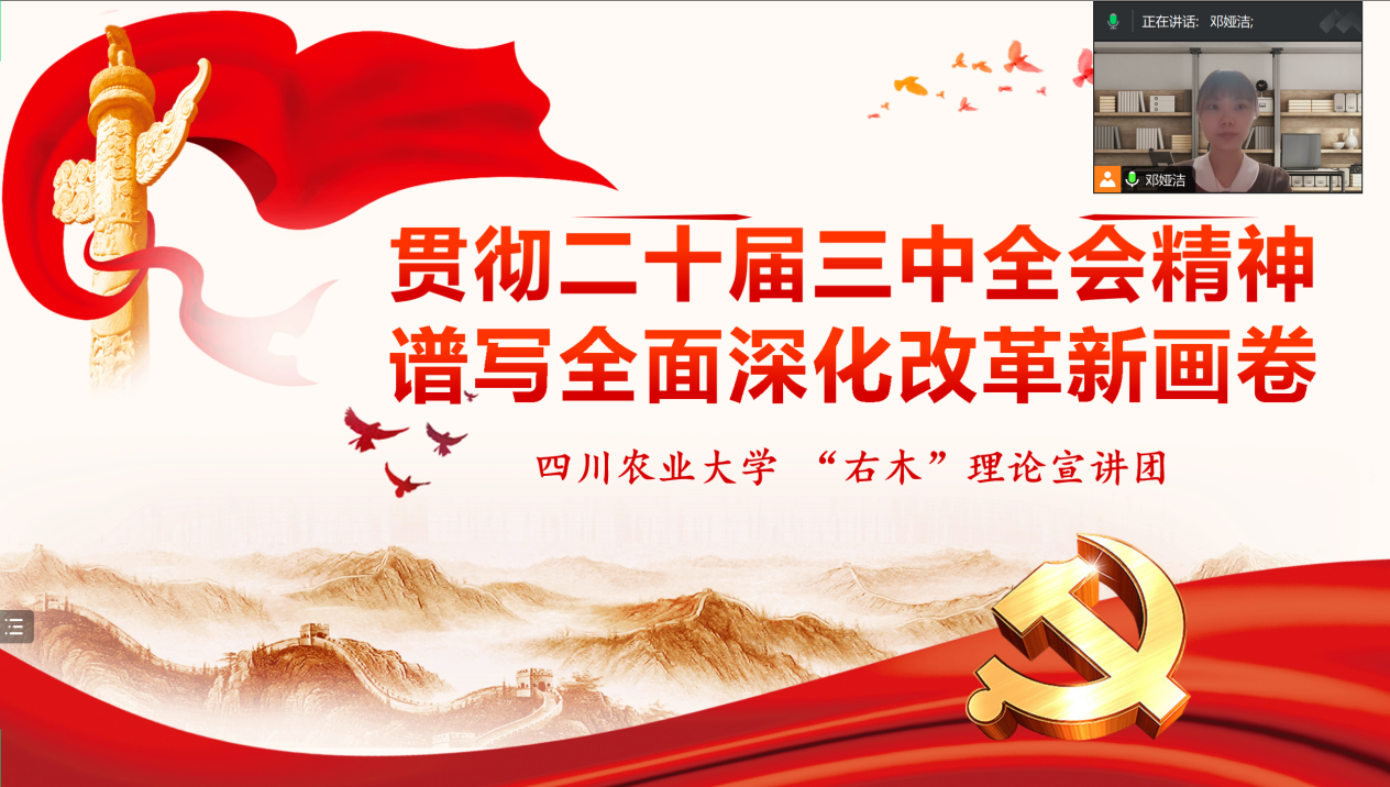 为深入学习贯彻党的二十届三中全会精神,让企业员工对党的二十届三中全会精神更加了解,9月29日,重庆市九龙坡区三角道社区好大哥供应链管理有限公司邀请右木理论宣讲团成员邓娅洁宣讲党的二十届三中全会精神。