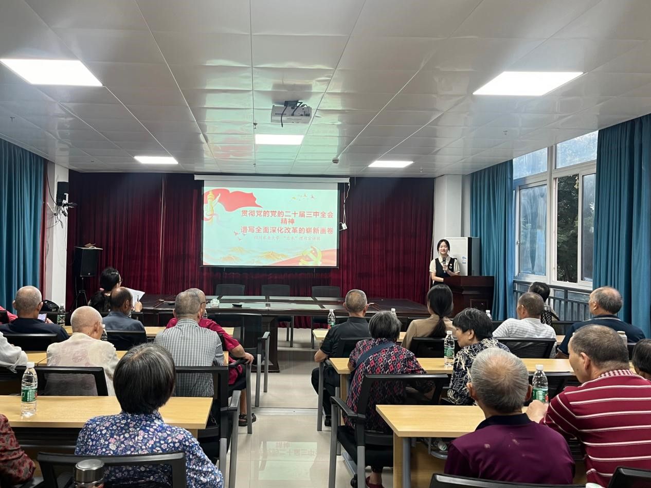 为深入学习贯彻党的二十届三中全会精神,推动社区党员同志们深刻理解全会精神实质,进一步统一思想、凝聚共识,10月10日,ok138cn太阳集团529右木理论宣讲团成员程全飞雪面向龙泉驿区丽阳社区开展了《贯彻党的二十届三中全会精神,谱写全面深化改革新画卷》的主题宣讲。