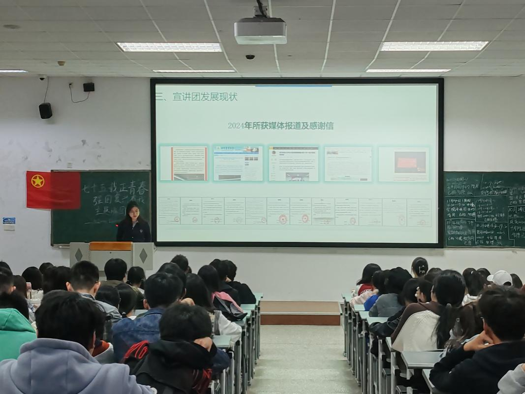 宣讲团成员李欣玥以右木理论宣讲团暑期社会实践活动的经历为蓝本,开启了题为《以青春之我,传递信仰之光——右木理论宣讲团深入基层开展实践》的宣讲,就右木理论宣讲团的社会实践获奖情况、社会实践筹备过程等进行了介绍,全面展示了右木理论宣讲团在实践中的成果和风采。此外,李欣玥还结合自身经历,分享了在新闻稿撰写和投递过程中的心得体会,为团支部成员提供了宝贵的经验。