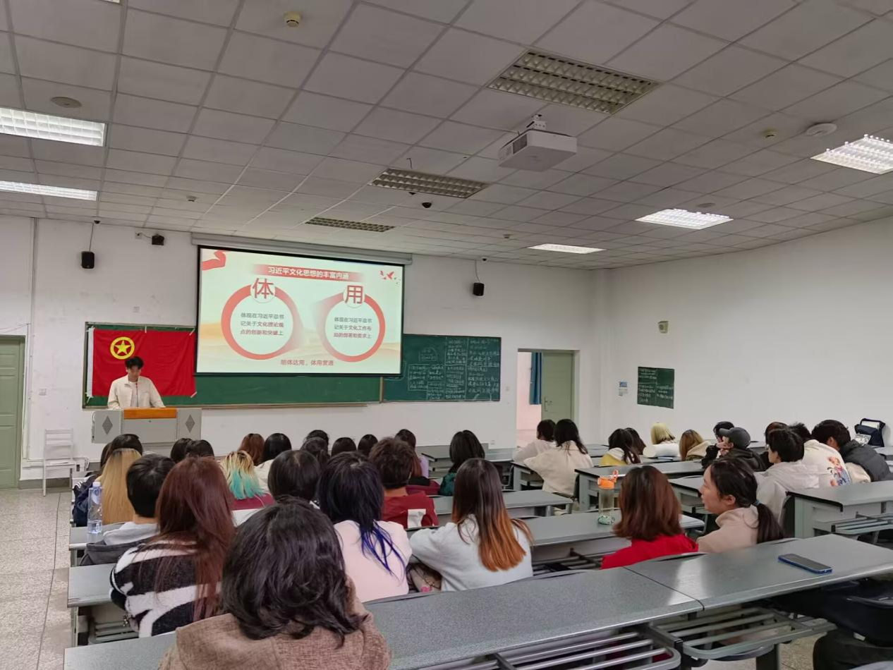 为使当代青年深入学习贯彻习近平总书记在庆祝中华人民共和国成立75周年招待会上的重要讲话,深刻理解新时代新征程中国特色文化事业建设,11月14日,ok138cn太阳集团529右木理论宣讲团成员刘俊面向ok138cn太阳集团529风景园林学院风景园林202201团支部与风景园林202204团支部开展了以“深入学习习近平文化思想”为主题的宣讲活动。