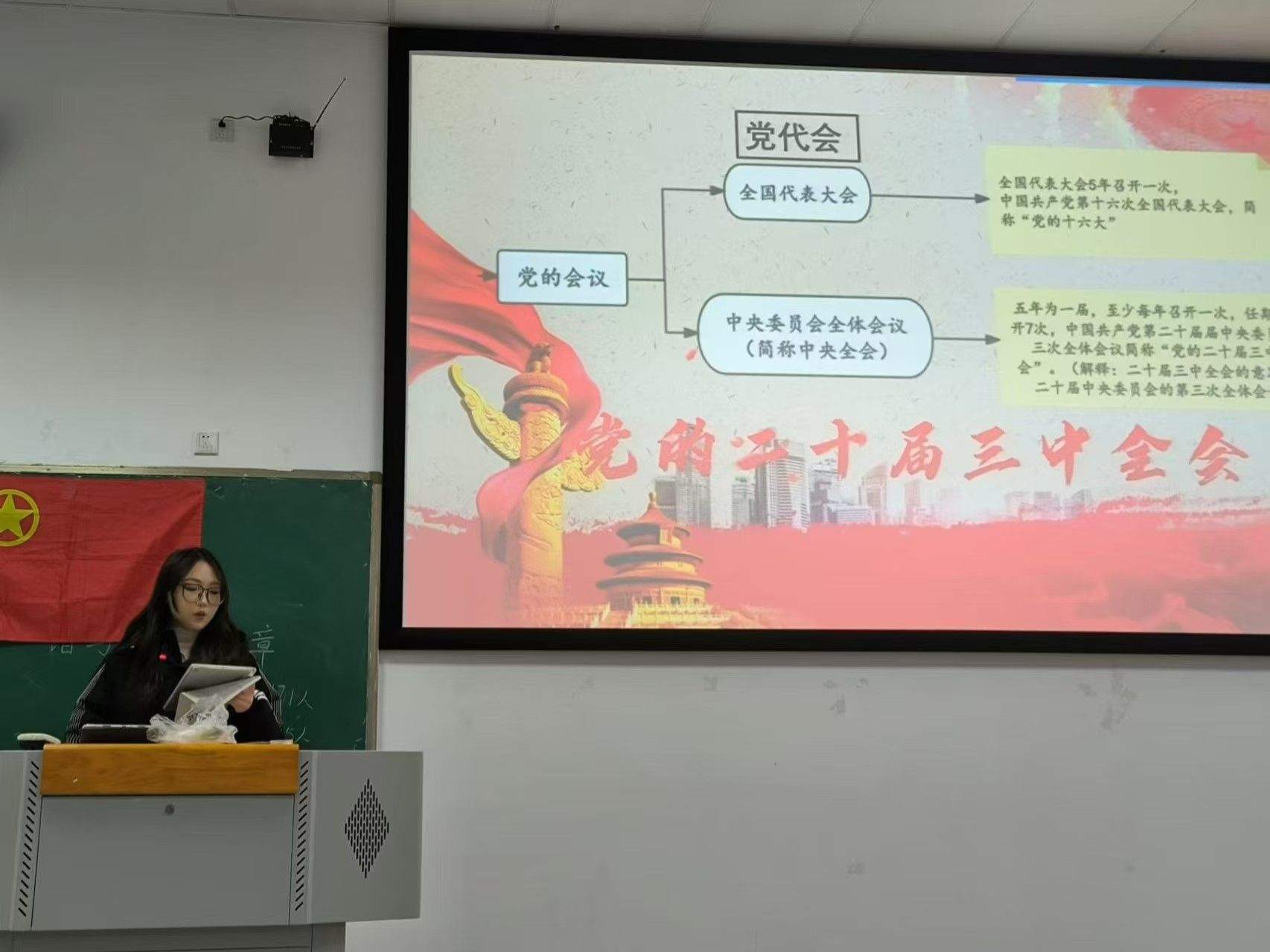为深入学习马克思主义理论,精准传递党的创新理论中的精髓要义,12月12日,右木理论宣讲团成员张诗晨面向ok138cn太阳集团529经济学院小班团支部开展了主题为“认识党的二十届三中全会”的理论宣讲活动。