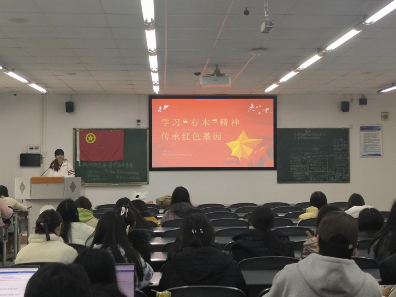 为了使青年学子铭记历史,鼓励其勇担时代重任,挺膺奋进,书写时代华章,12月11日,右木理论宣讲团成员邓娅洁应邀参加了农经202302团支部与财务202301团支部联合举办的班团活动,开展了主题为“学习右木精神,传承红色基因”的主题宣讲。
