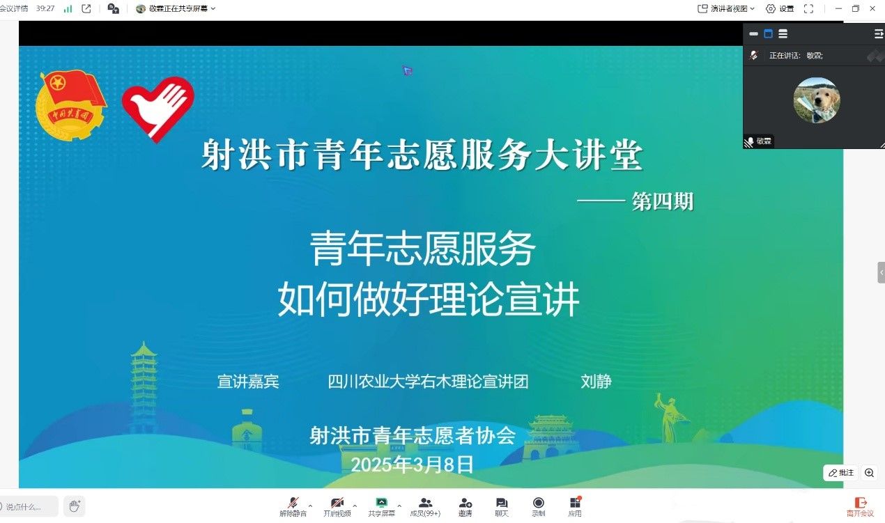为传播思想力量,践行初心使命,3月8日,右木理论宣讲团成员刘静面向射洪市青年志愿者协会开展“青年志愿服务如何做好理论宣讲”的主题分享,旨在推动青年志愿服务与理论宣讲工作的深度融合,从而提升青年志愿者的服务能力和水平。