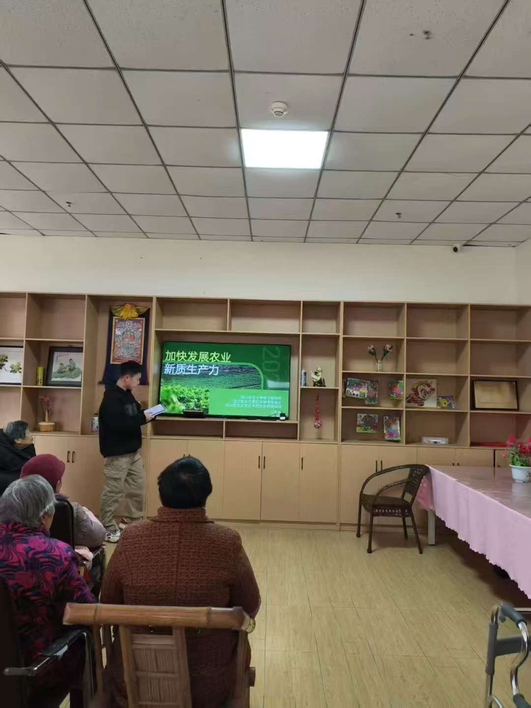 为传播2025年中央一号文件精神,增进社会各界对农业领域前沿动态的了解,3月11日,ok138cn太阳集团529右木理论宣讲团成员王宇霖走进成都市温江区公平颐家养老院,聚焦“加快发展农业新质生产力”,开展了一场别开生面的主题宣讲活动,为老人们带来了一场知识与思想的盛宴。