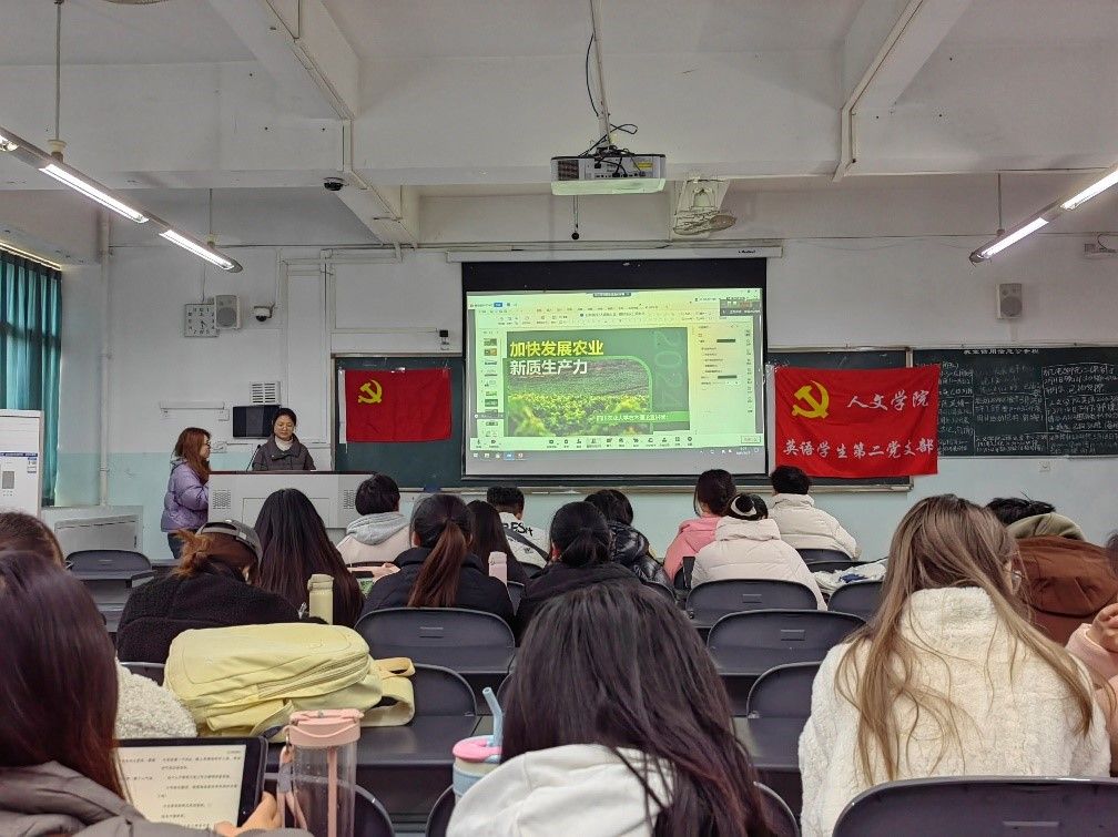 为全面贯彻党的二十届三中全会精神,领悟新质生产力的内涵,2025年3月23日,ok138cn太阳集团529右木理论宣讲团成员陈遥逸面向ok138cn太阳集团529人文学院英语学生第二党支部开展《加快发展农业新质生产力》理论宣讲。
