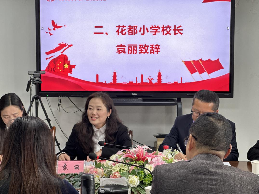 学院院长何思妤详细介绍了学院在思政教育领域的深厚积淀与丰富资源。她强调,本次合作研讨会对推动构建纵向贯通、横向联动的大中小学思政课一体化育人体系有着重要的价值,希望通过此次会议推动后续系列活动的开展,期待与花都小学一起努力,构建大中小学思政育人一体化育人模式新标杆。