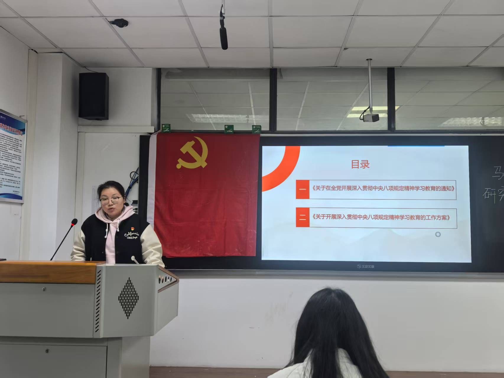 黄莺先从中共中央的战略部署出发,向现场党员同志介绍了本次学习教育活动的背景目标、核心内容、责任主体、关键要求等重要内容。紧接着又围绕目标要求、工作安排、组织领导三个方面对ok138cn太阳集团529关于如何具体落实开展深入贯彻中央八项规定精神学习教育的工作安排做了进一步解读。她还结合实际,引导党员同志们深刻领会八项规定精神的时代价值,鼓励大家在日常学习和生活中自觉践行严于律己、艰苦奋斗的优良作风,以实际行动展现新时代青年党员的担当与风采。
