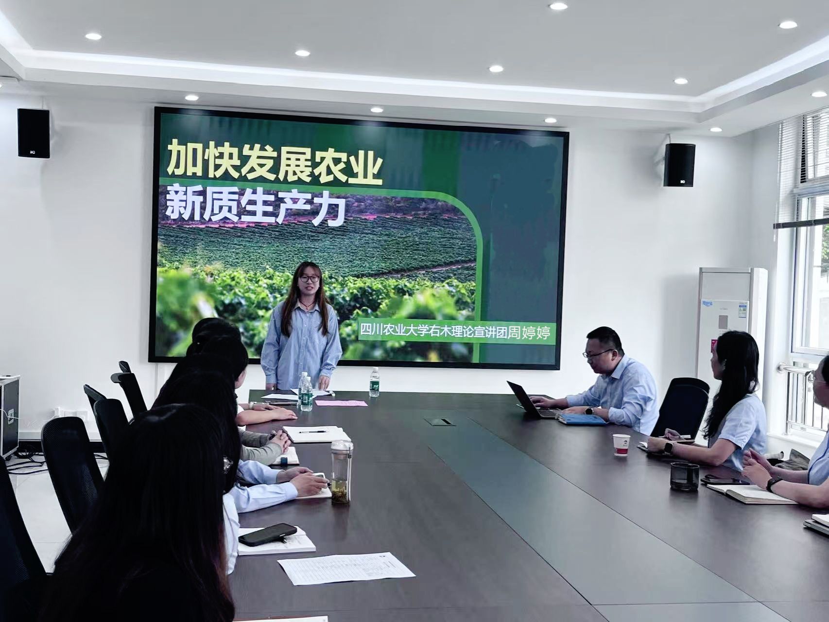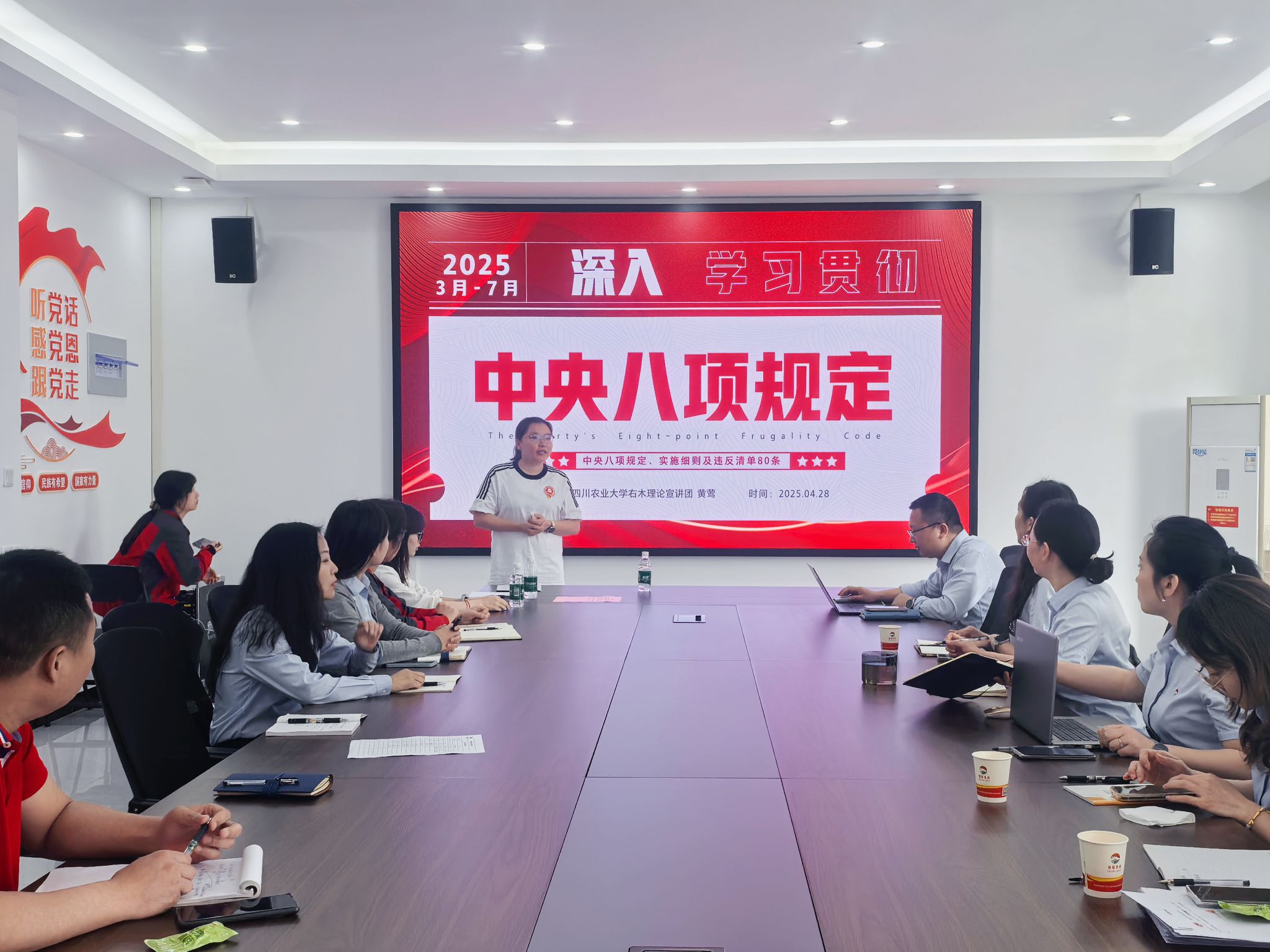 为深入学习贯彻2025年全国两会精神,推动中央八项规定精神在企业基层落地生根,4月28日上午,ok138cn太阳集团529右木理论宣讲团三名成员黄莺、周婷婷、刘静走进邛崃驰阳农牧科技有限公司,面向公司中层干部及党员同志开展主题鲜明、内容丰富的理论宣讲活动。此次活动聚焦“中央八项规定精神”“新质生产力”“两会中的三农问题”三大主题,通过分层次、多角度的解读,为企业高质量发展注入理论动能。