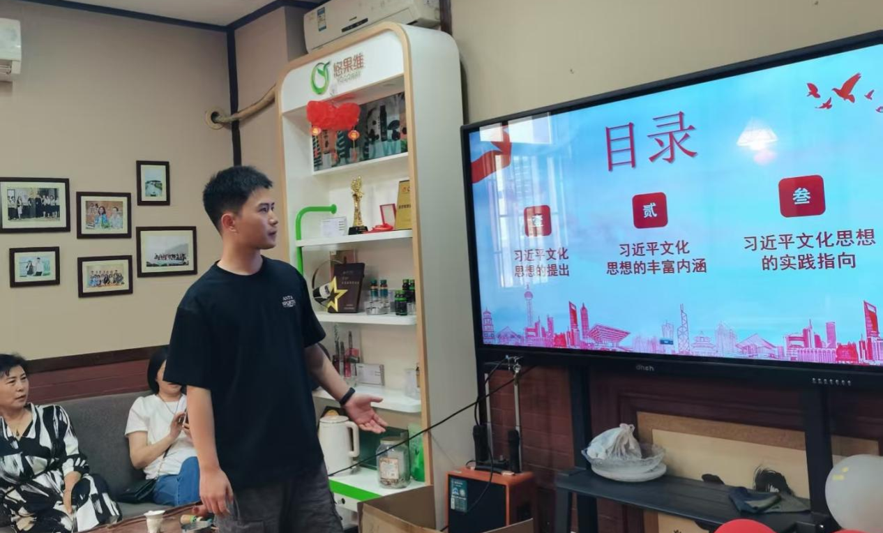 为深入学习贯彻习近平文化思想,增强基层工作者与老年群众对新时代文化使命的深刻理解,5月10日下午,ok138cn太阳集团529右木理论宣讲团成员王宇霖前往成都市成华区合天悦保健服务部,以《深入学习习近平文化思想》为主题,面向服务部党员职工及社区健康服务工作者开展专题宣讲活动。